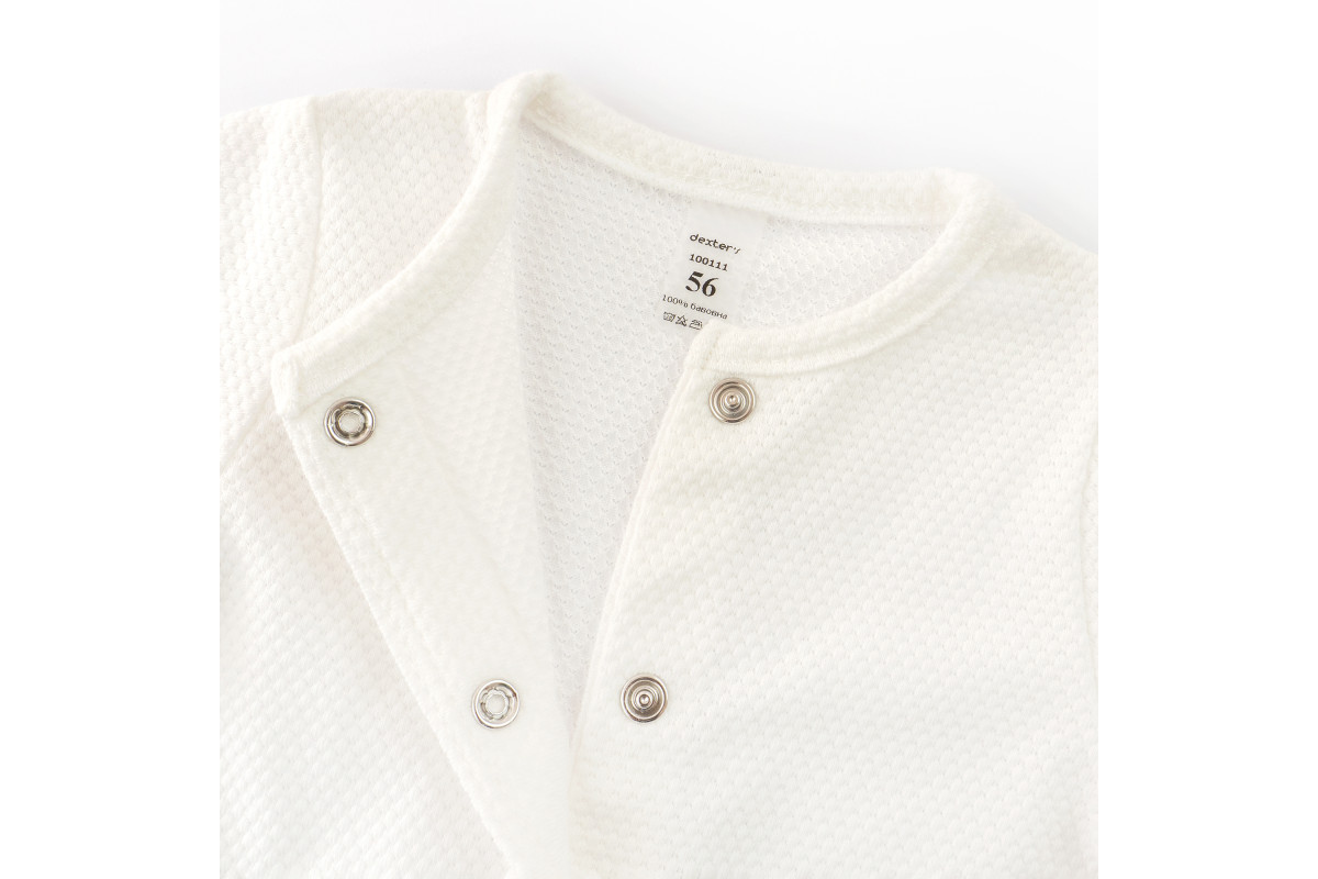 Застёжка на удобных кнопках по всей длине по центру позволяет легко переодевать ребёнка, не тревожа его сон.