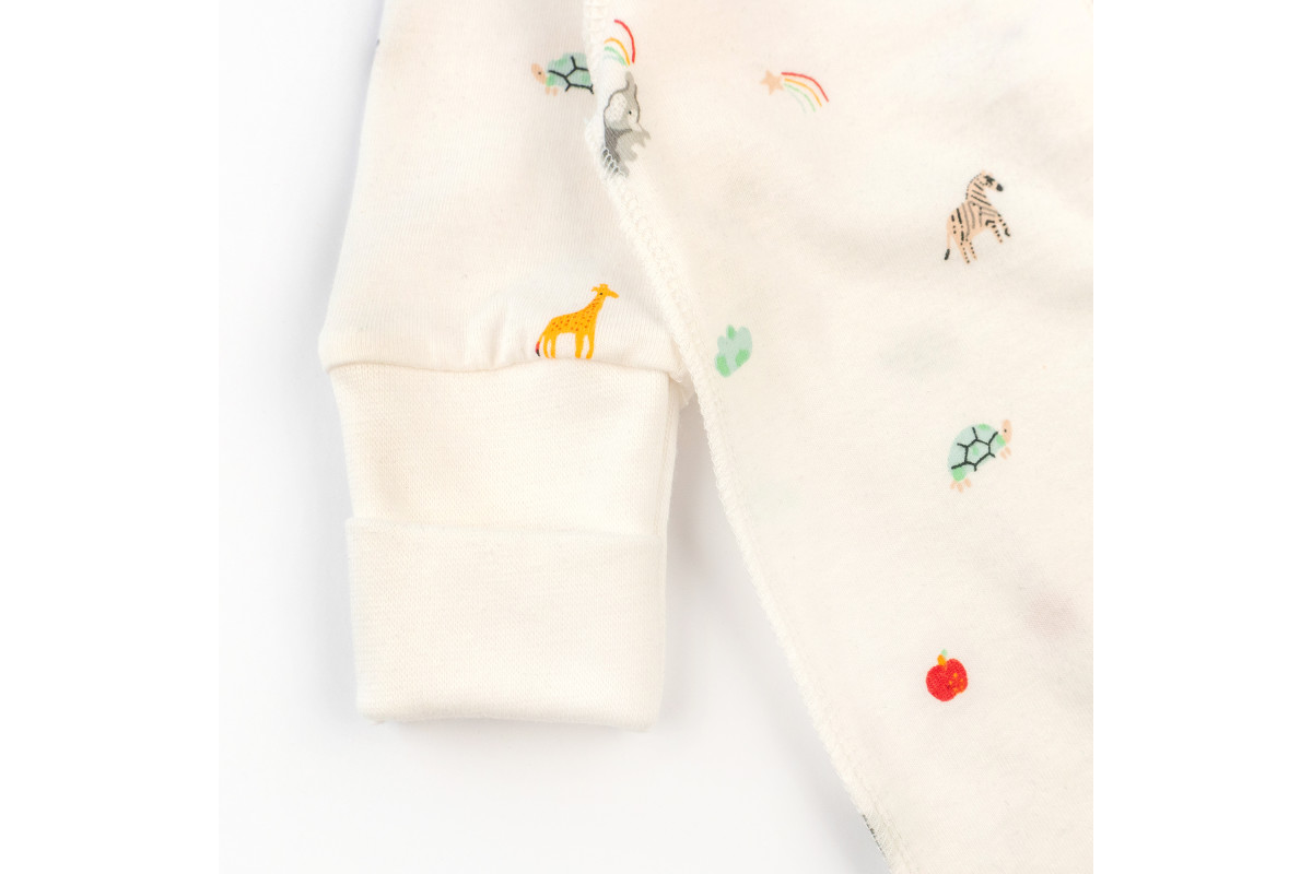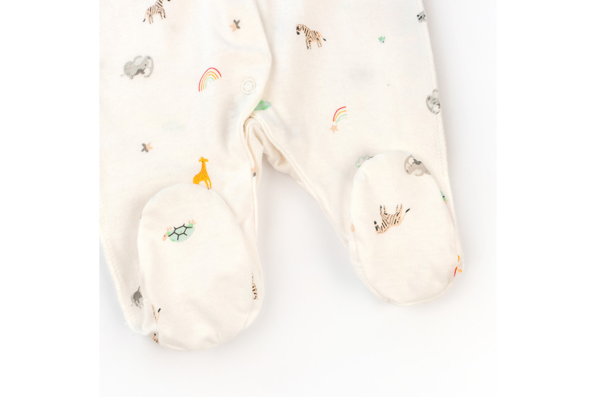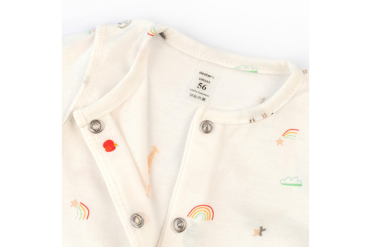 Стильный и веселый человечек для малышей, выполненный в нежном молочном оттенке с принтом зверюшек — идеальный выбор для первых дней жизни.
