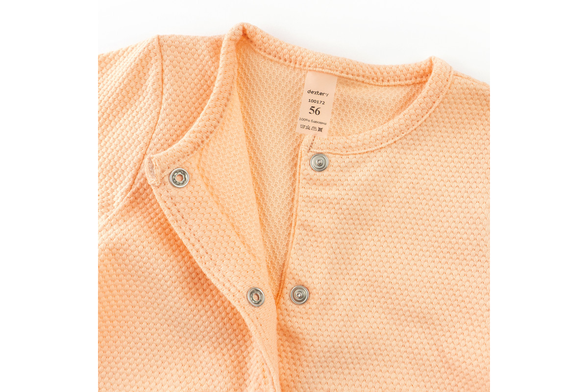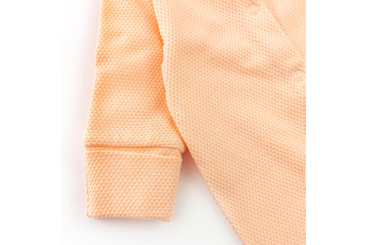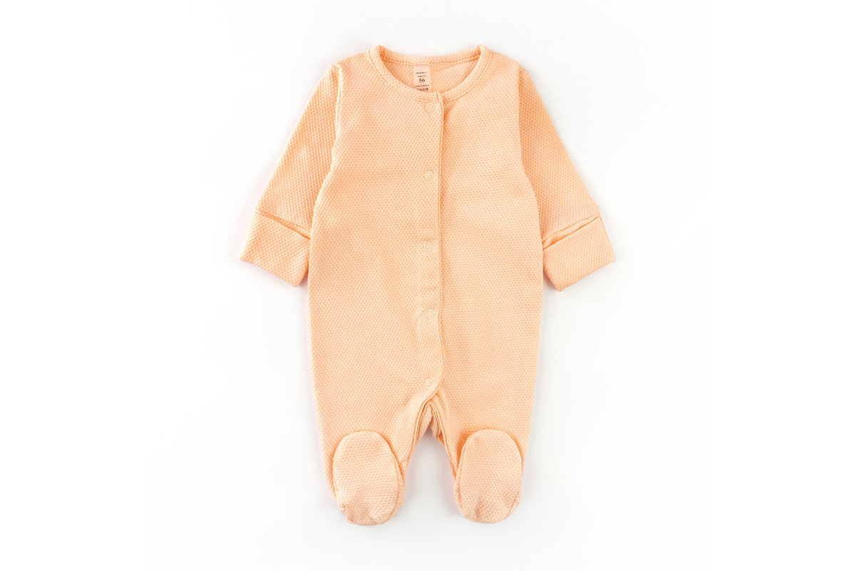 Застегивается по центру на кнопки, что позволяет легко переодевать ребёнка, не тревожа его сон.