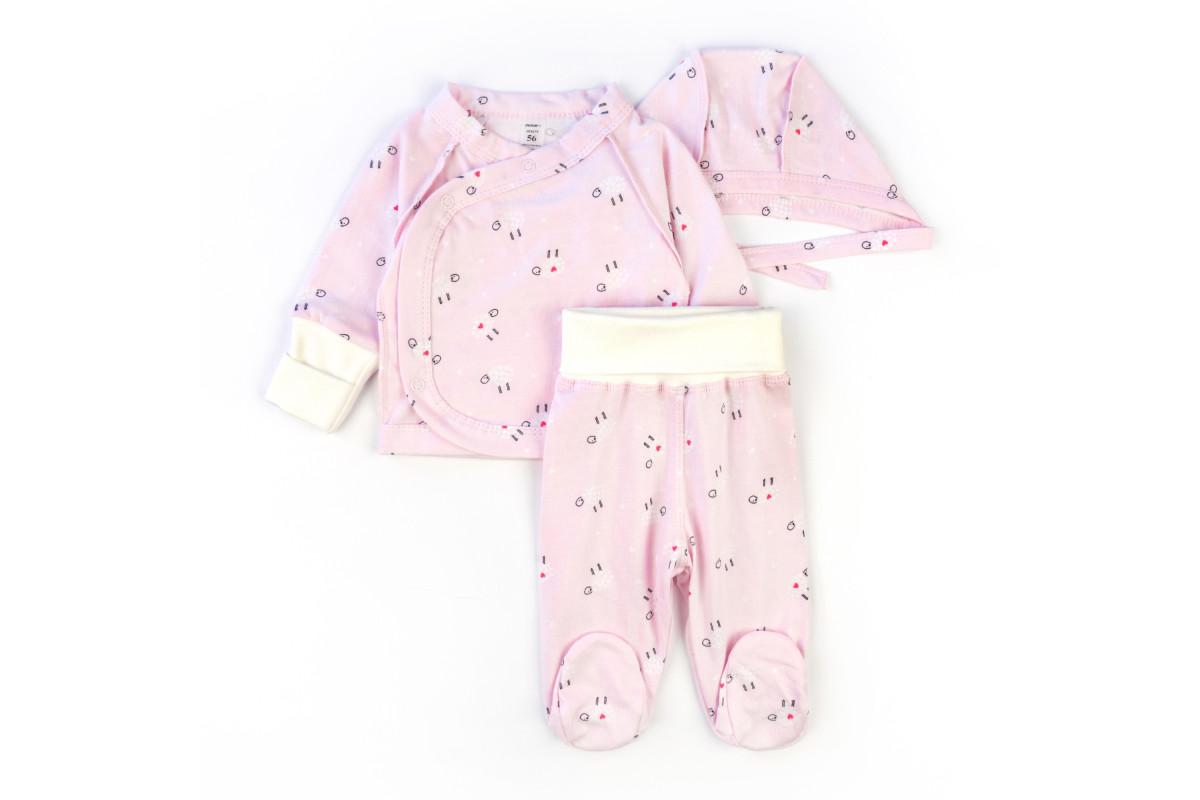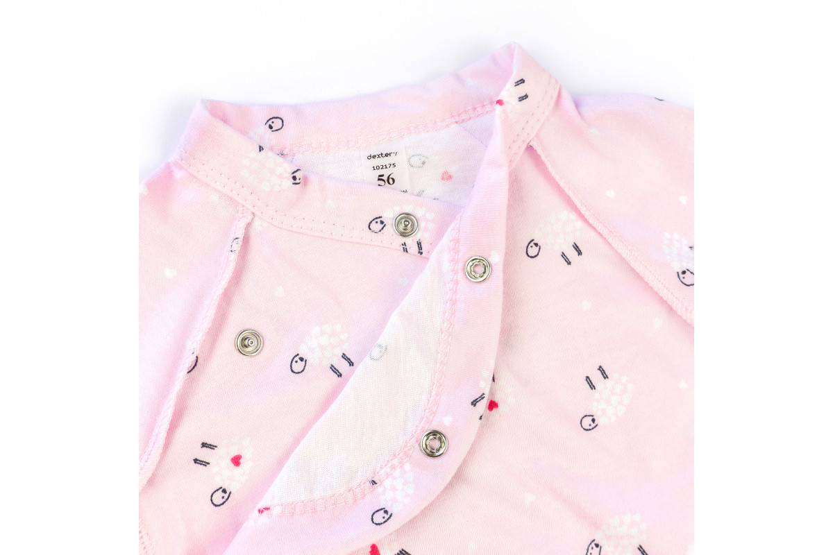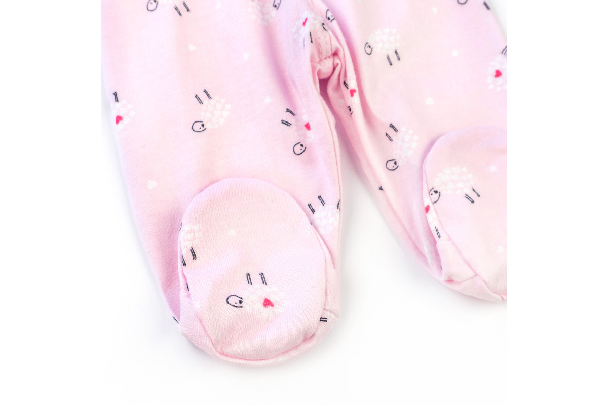 Комплект розового цвета с милым принтом в виде овечек будет отлично смотреться на Вашей малышке.