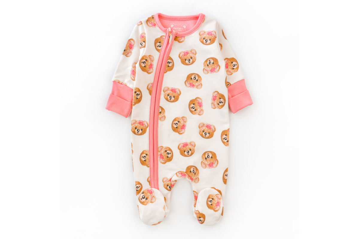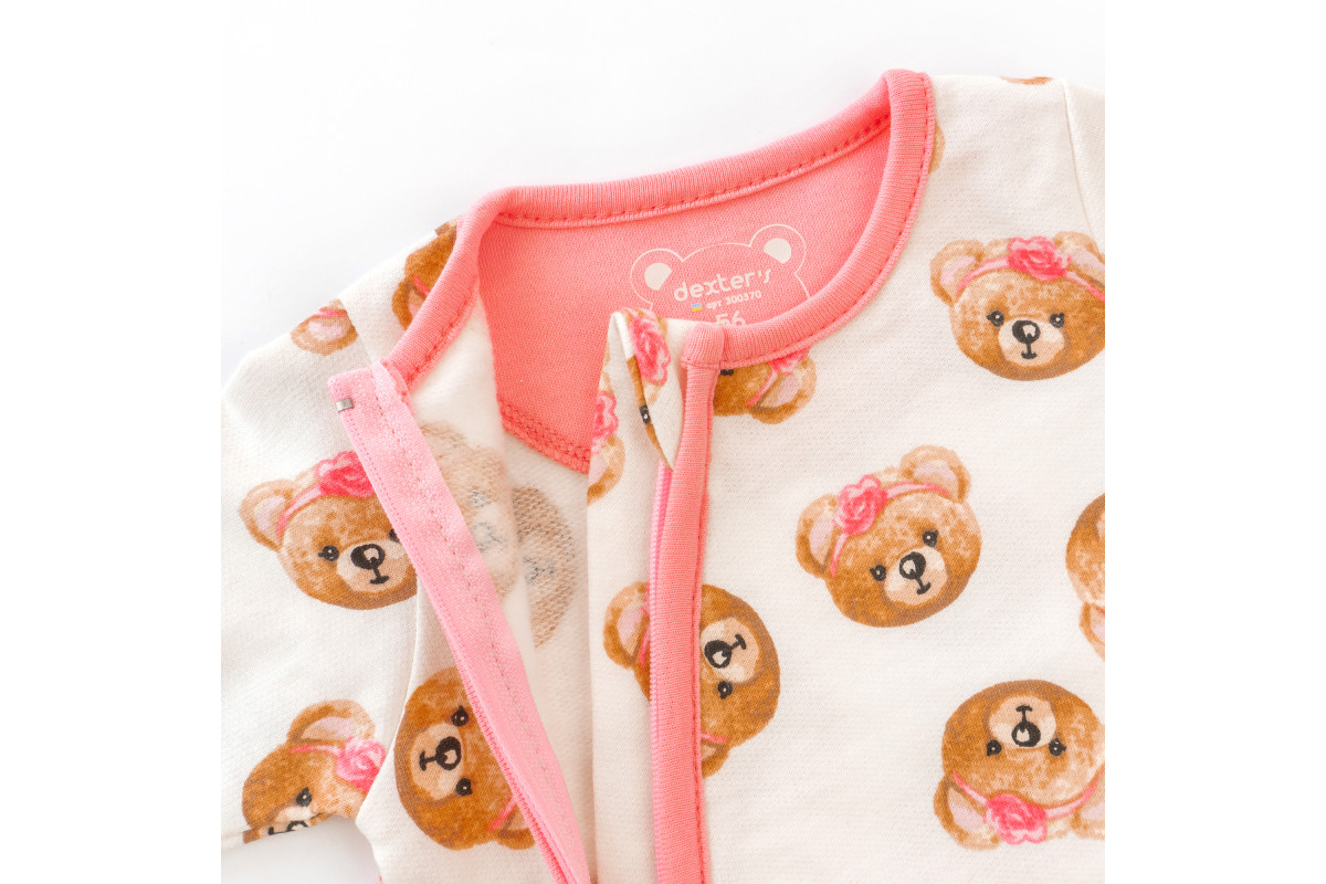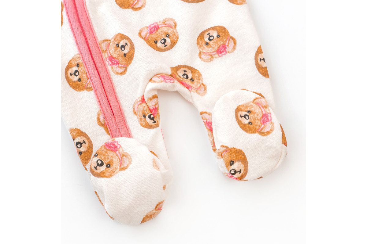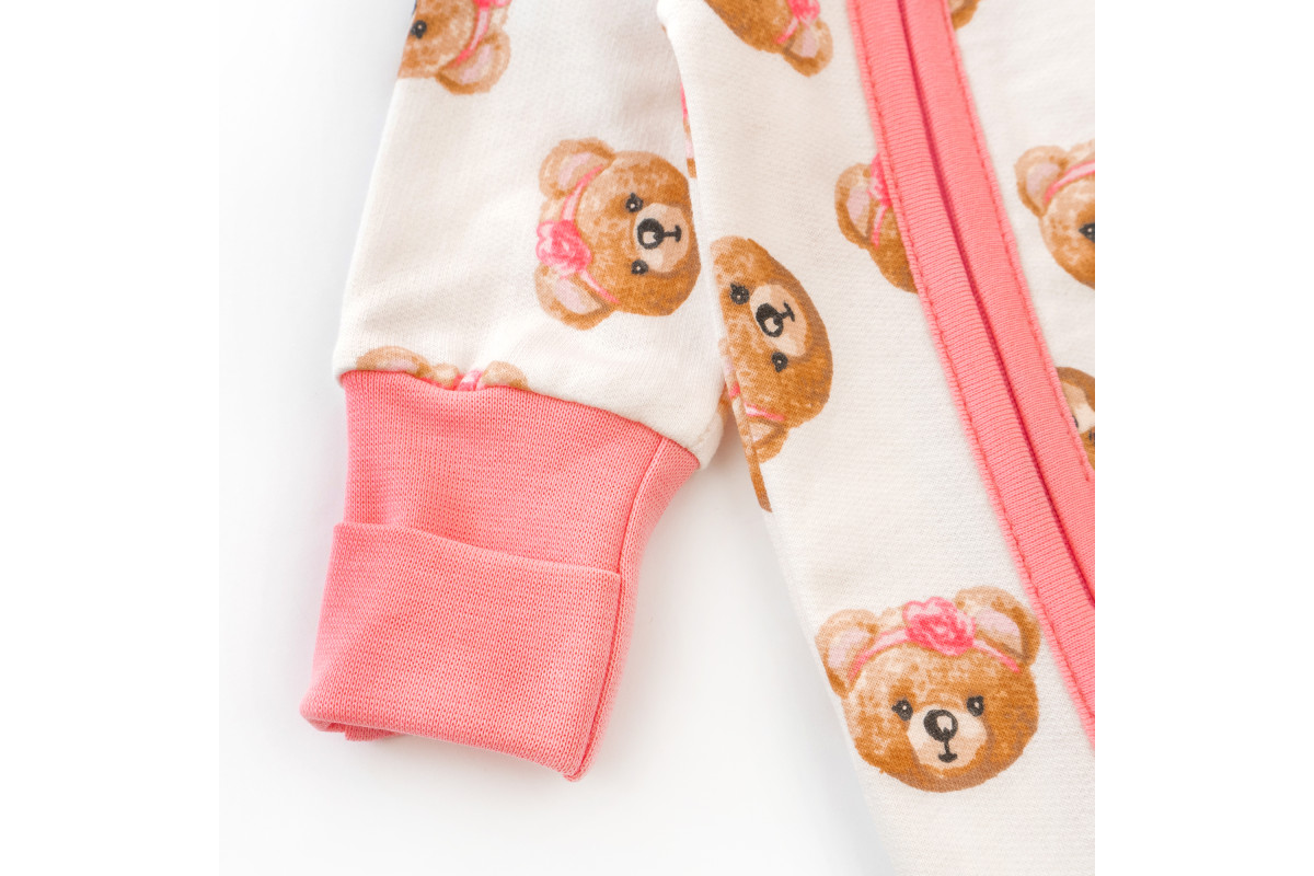 Розовый цвет рукавчиков и других элементов делает комбезик еще более милым.