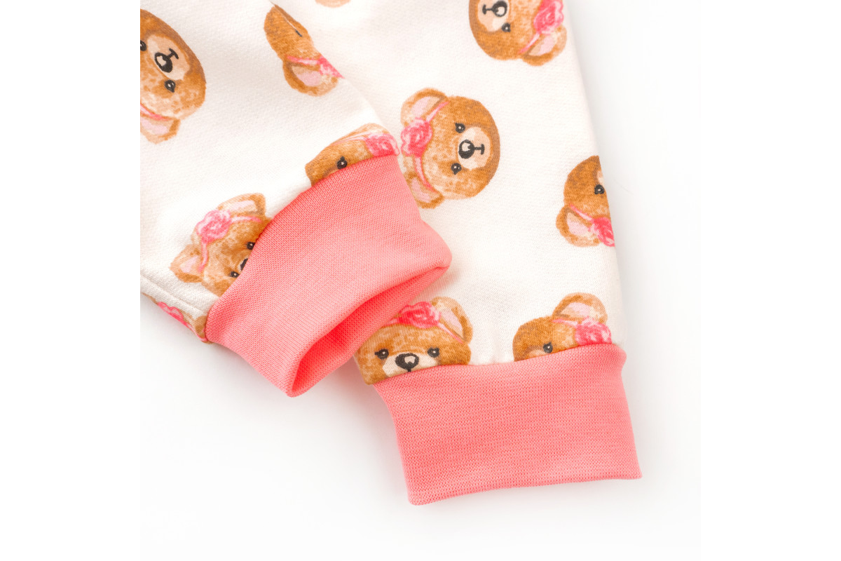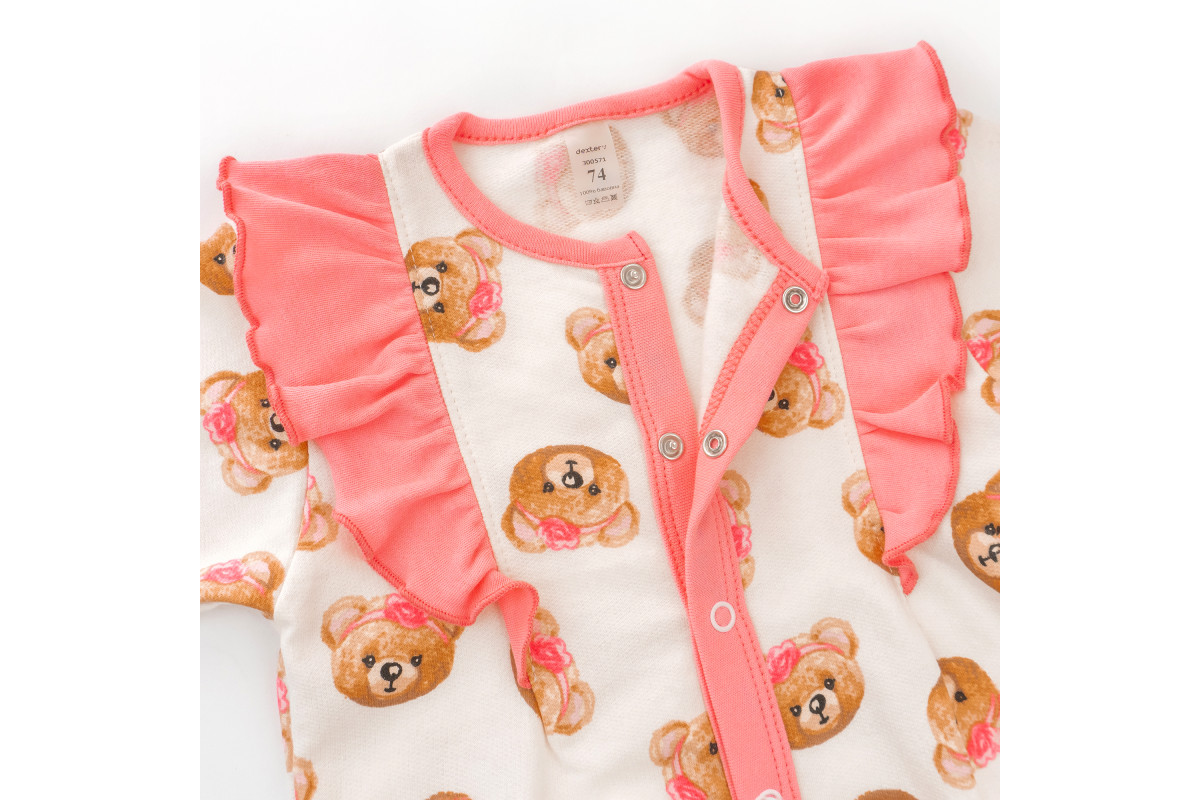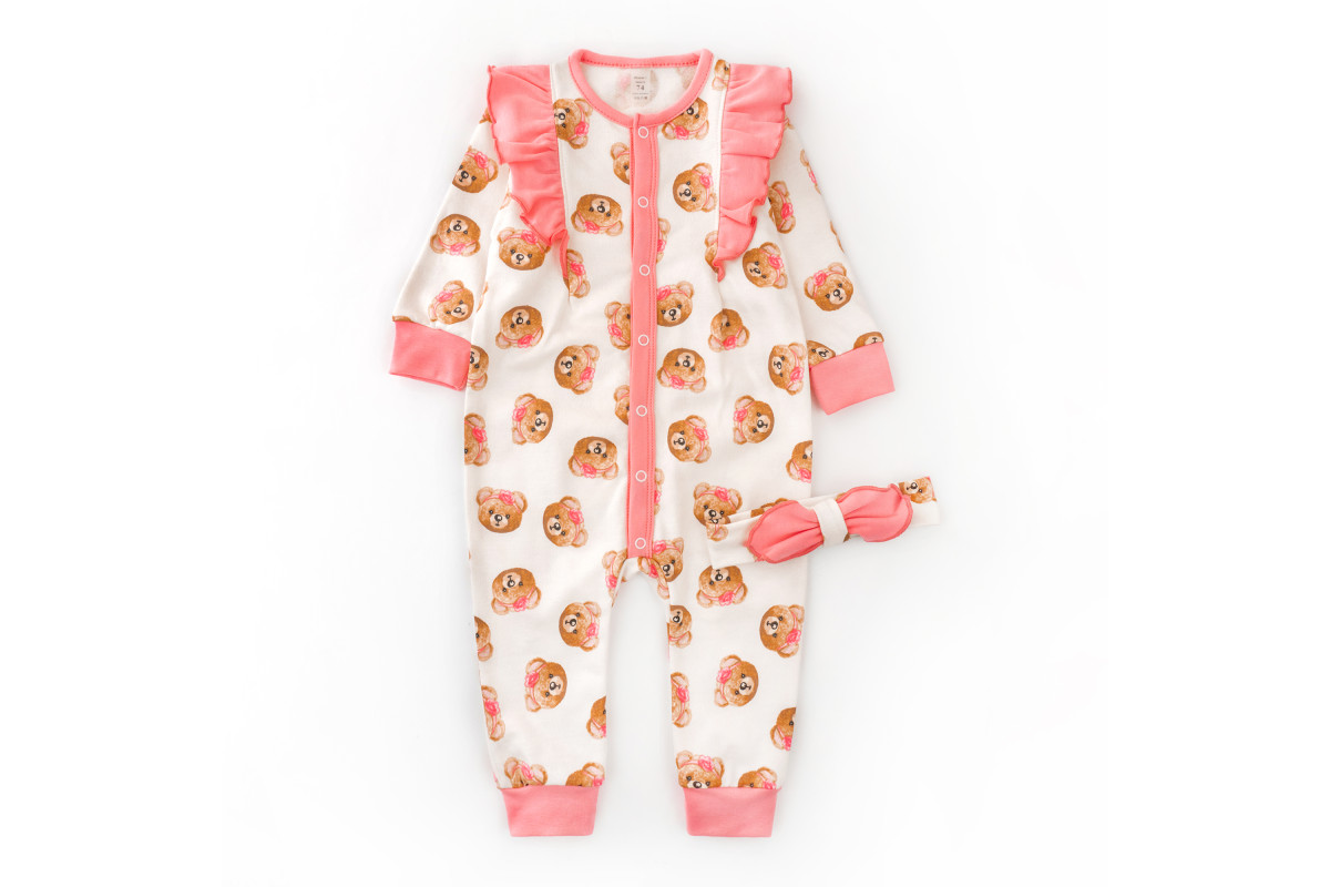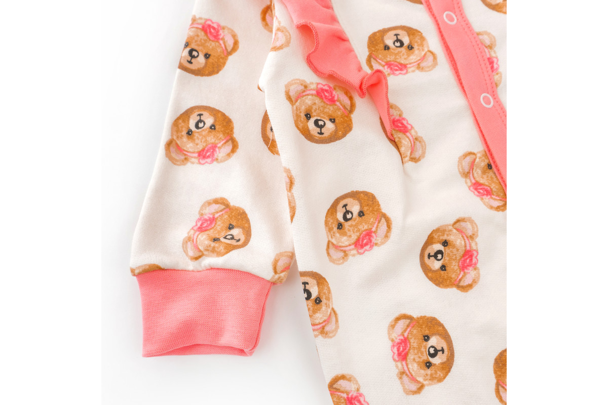 Человечек для младенцев, который пошит из набивного полотна с мишками на белом фоне.Человечек украше..