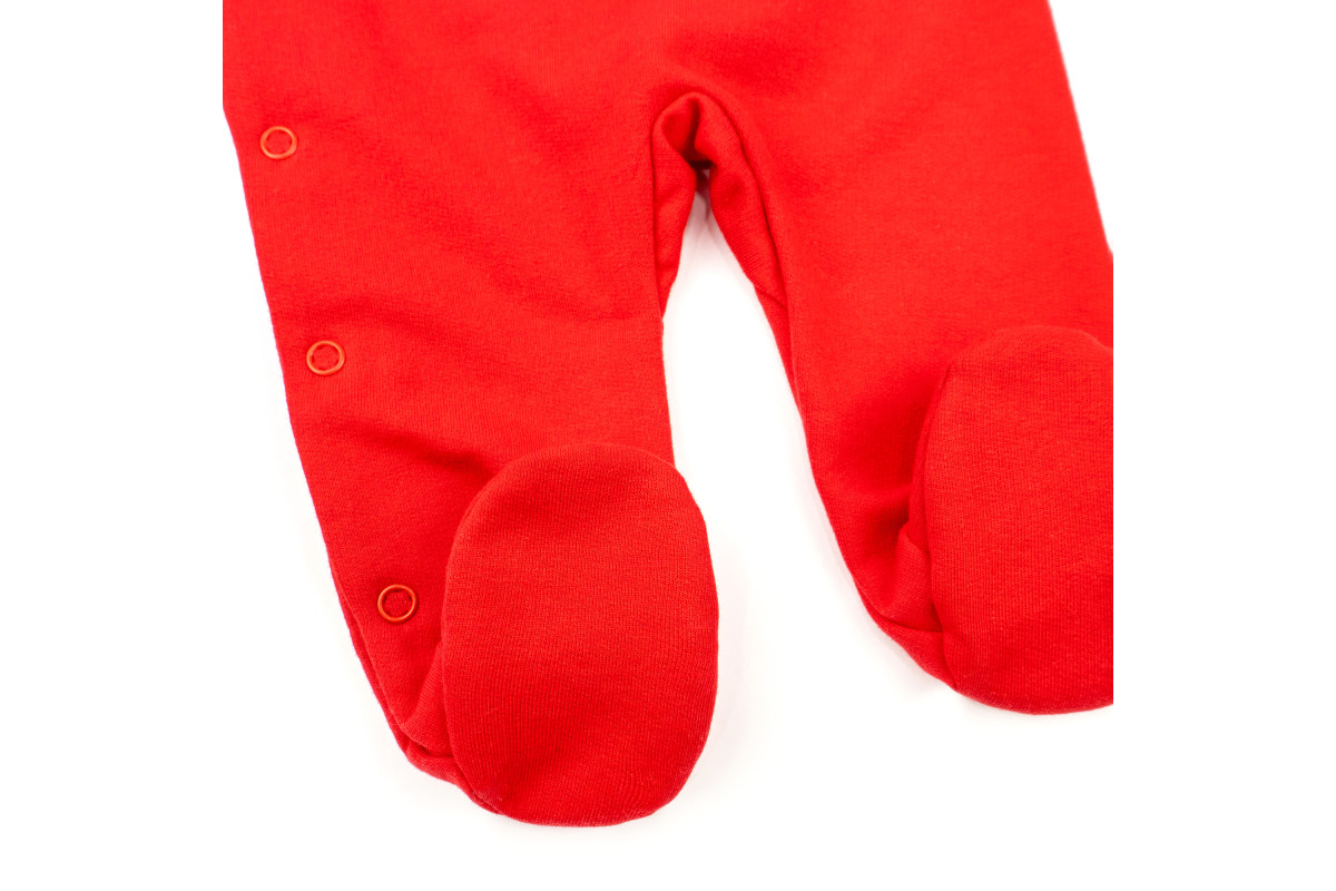 Застегивается на кнопки по диагонали. Рукавчики открытые, стопы ножек закрыты.