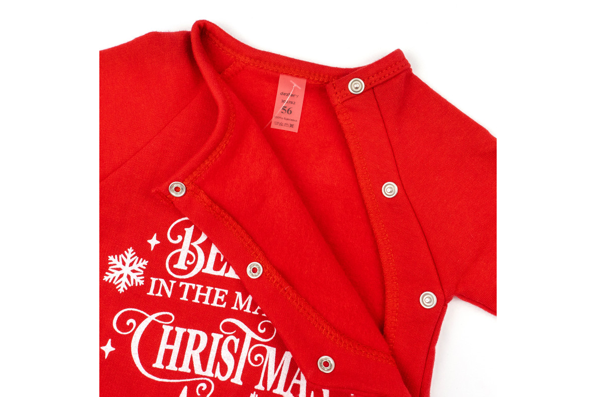 Человечек в красной расцветке с принтом подойдет как для мальчика, так и для девочки.