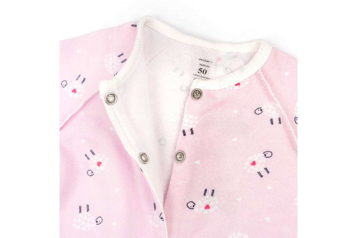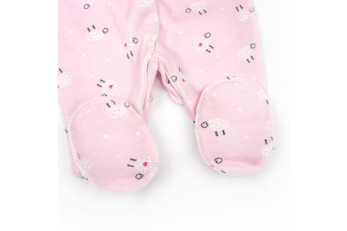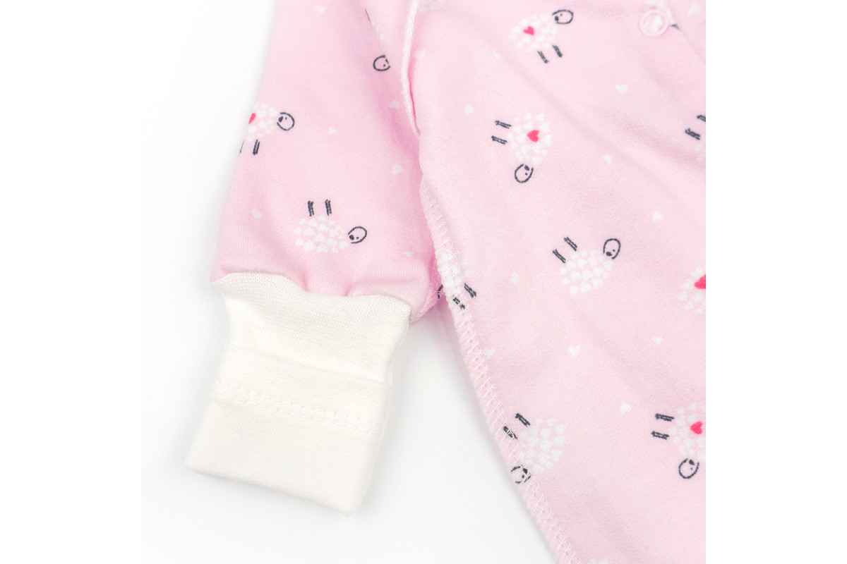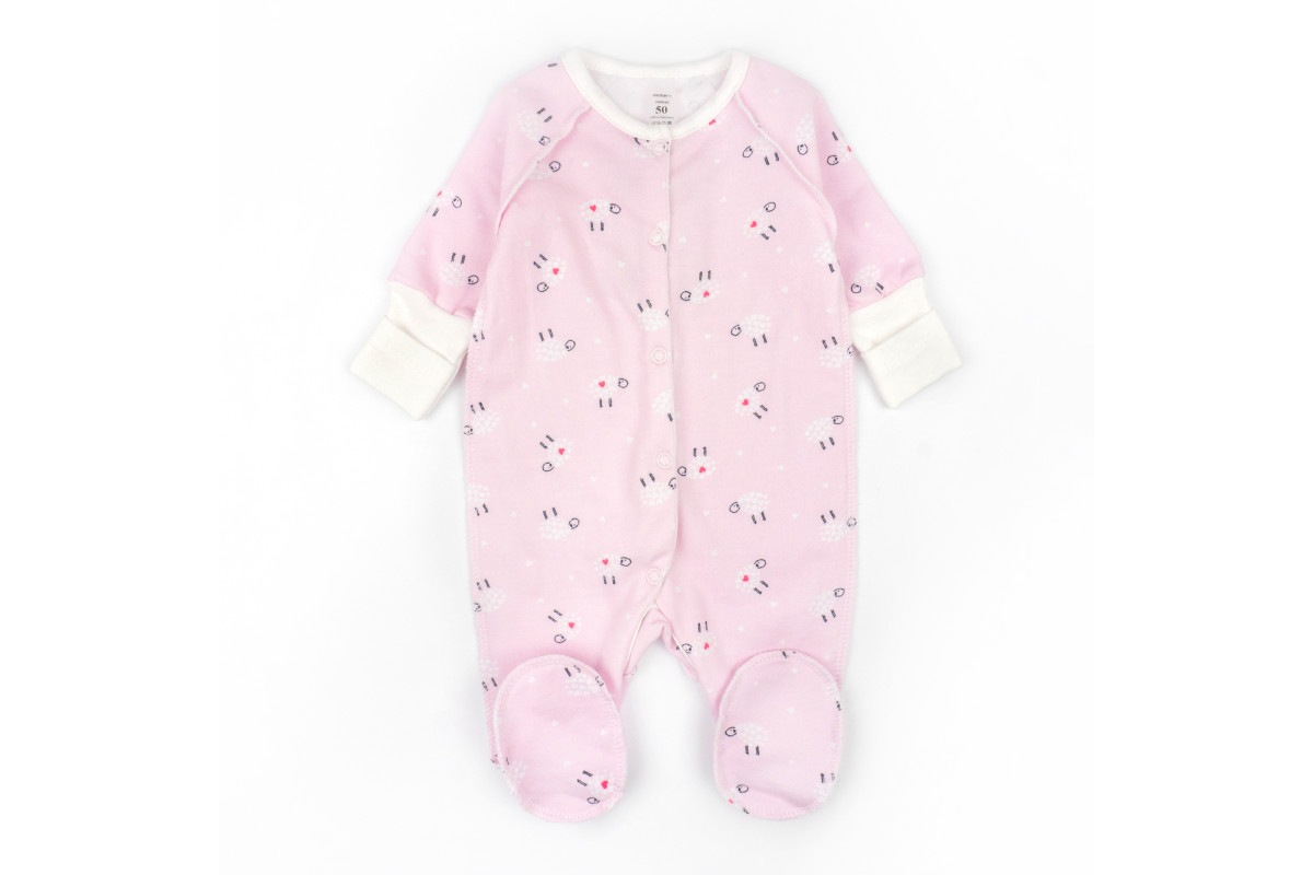 Человечек в расцветке розового цвета с милыми овечками подойдет для девочки.