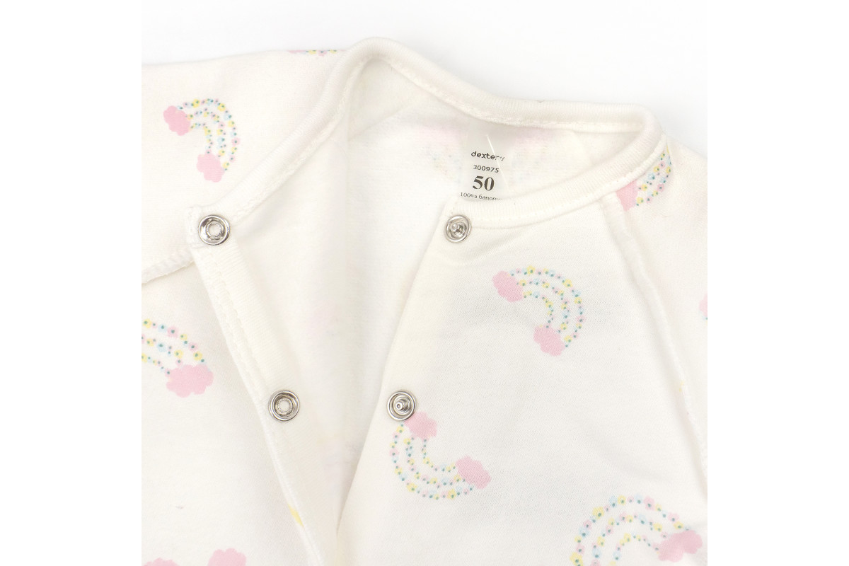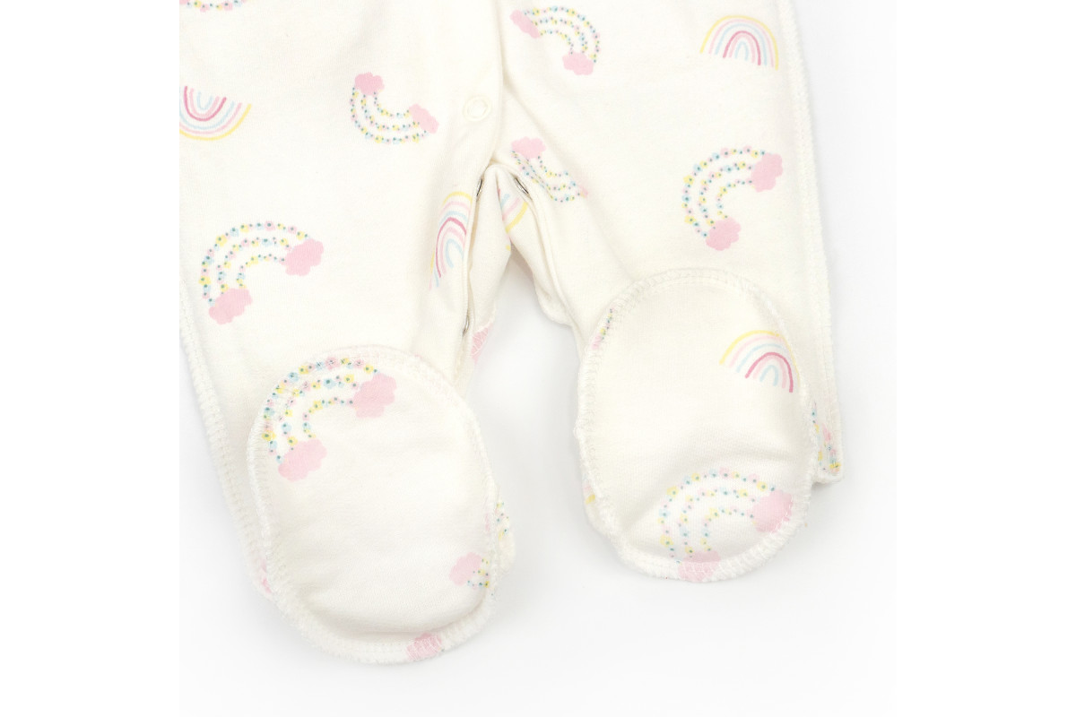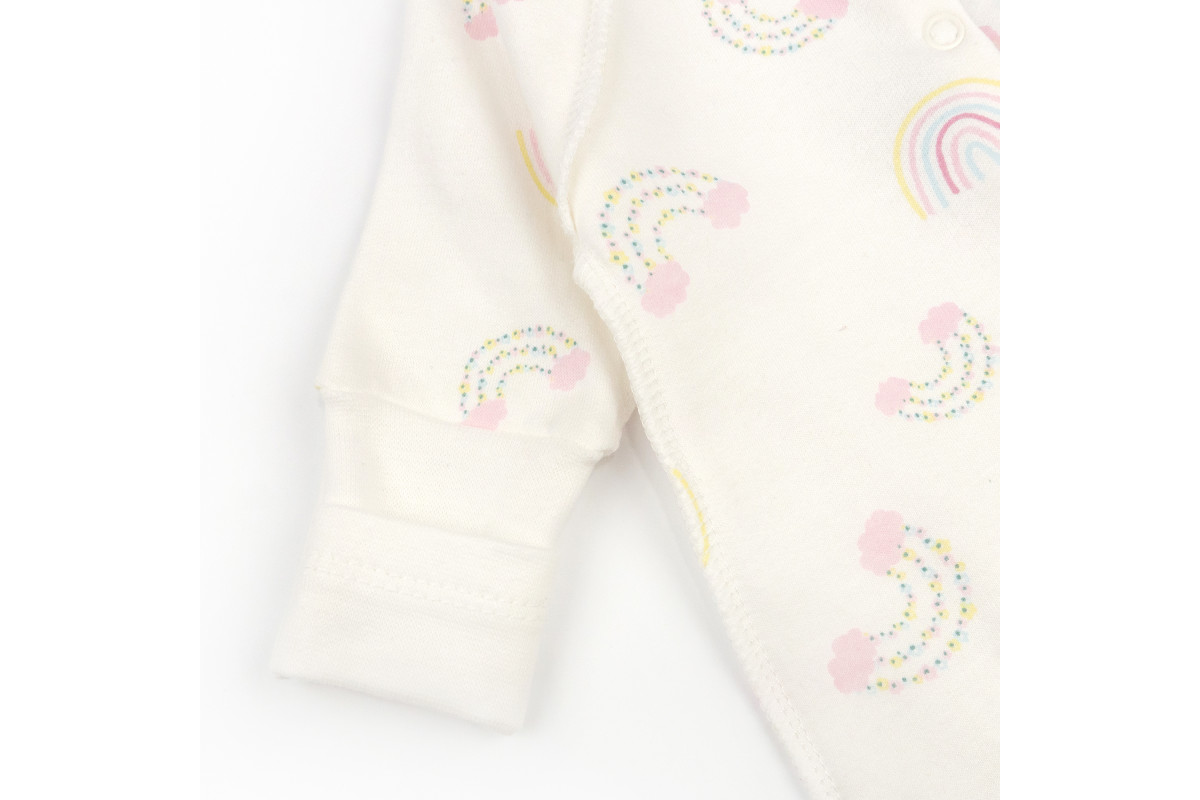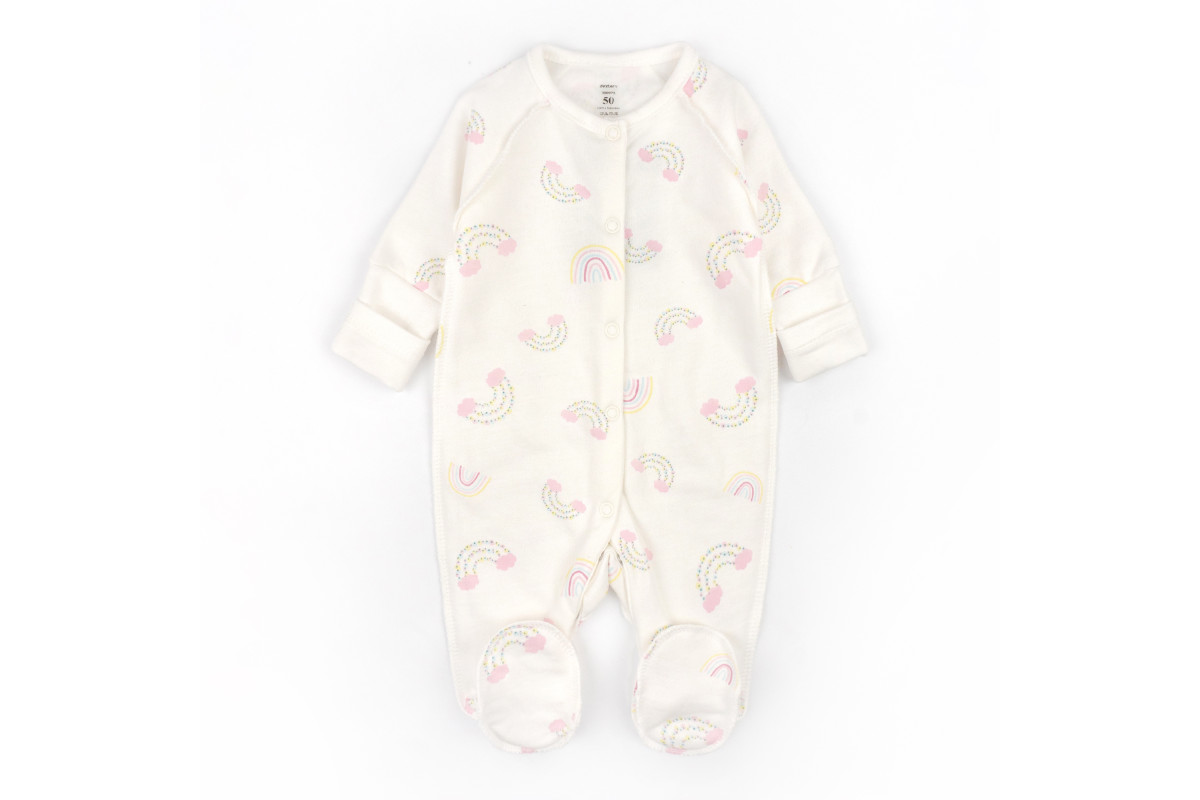 Комбинезон пошит наружными швами. Имеет рукава, которые можно закрыть, стопы ножек закрыты.