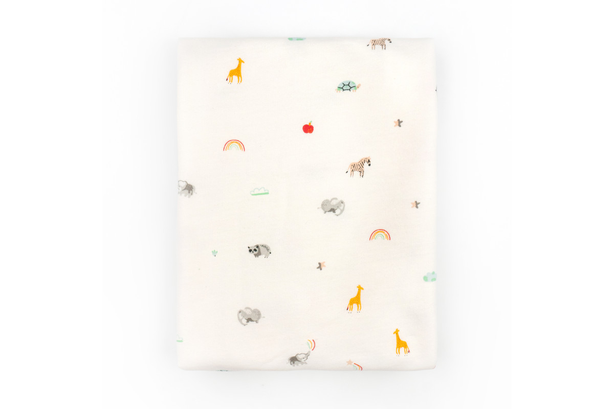 Имеет расцветку молочного цвета со зверятами. Расцветка подойдет как для мальчика, так и для девочки.