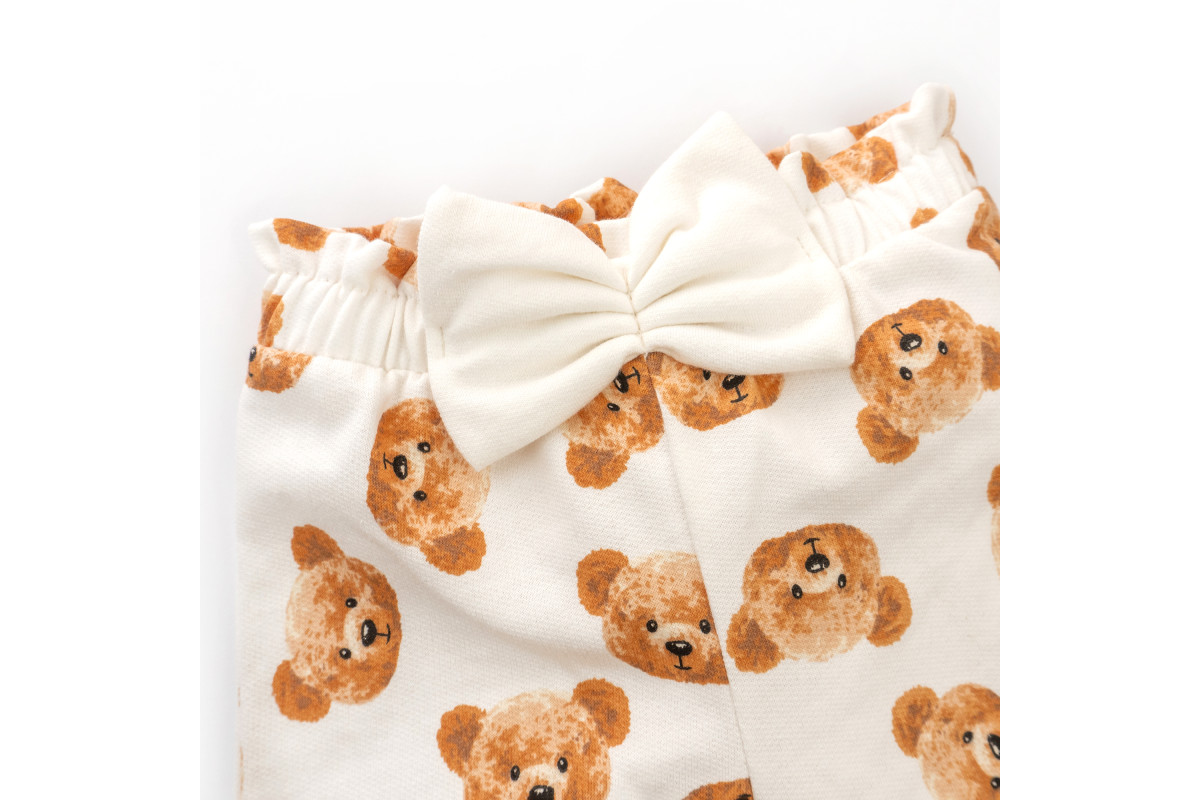 - штанишек на резинке из набивного полотна с мишками, которые украшены бантиком спереди;