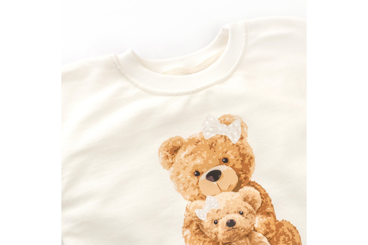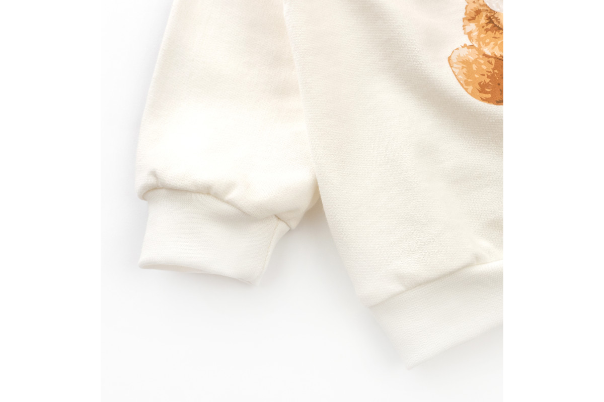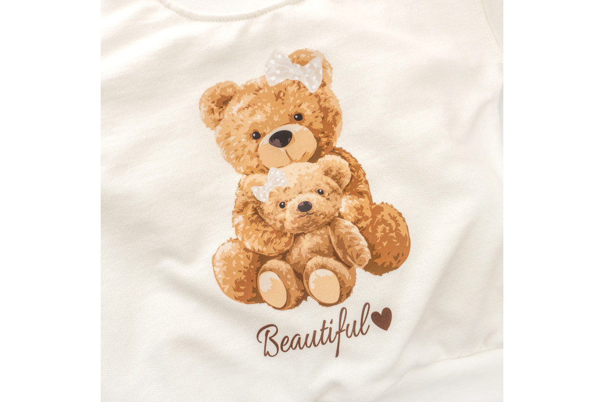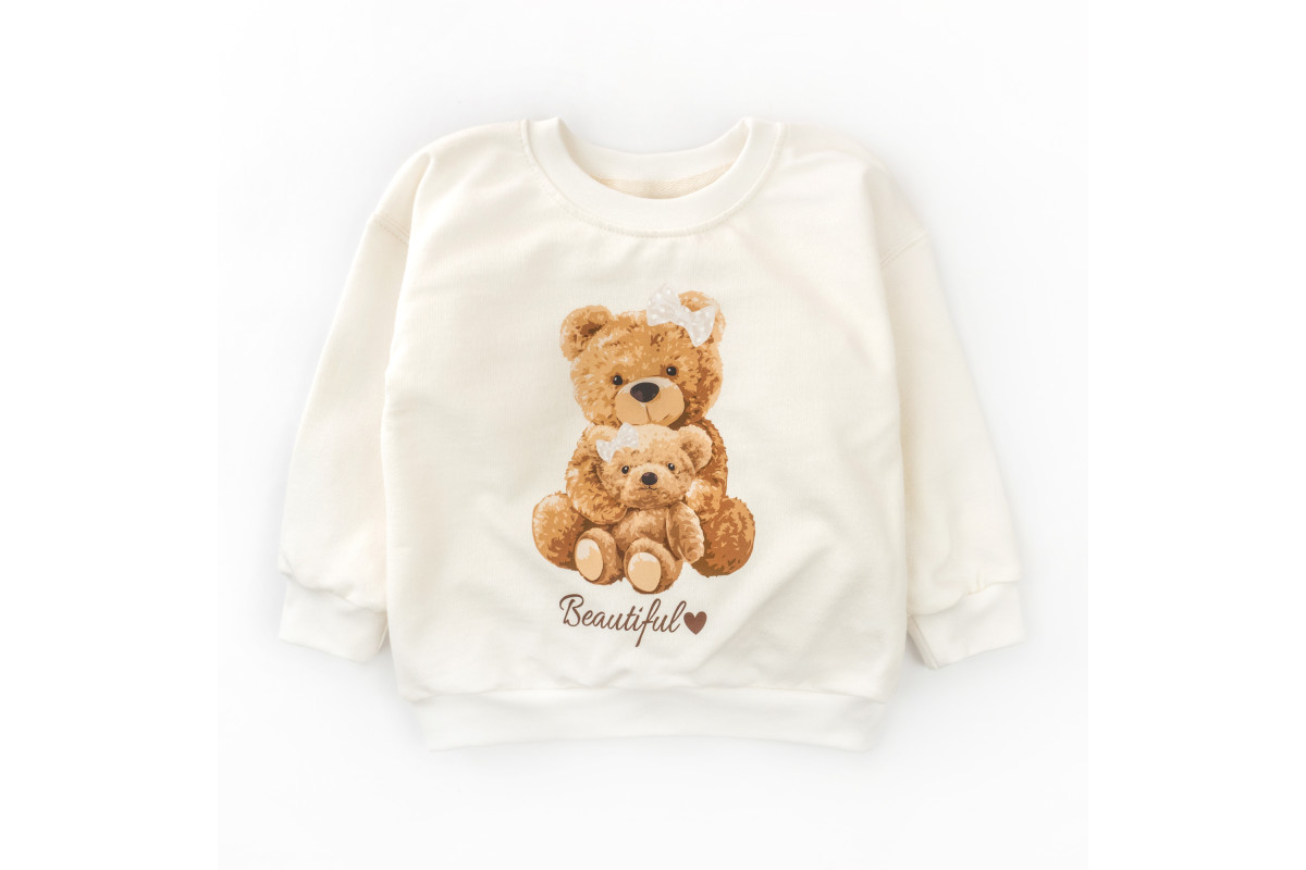 Свитшот для девочки молочного цвета с очень милым принтом мишек, которые придают образу нежности и уюта.