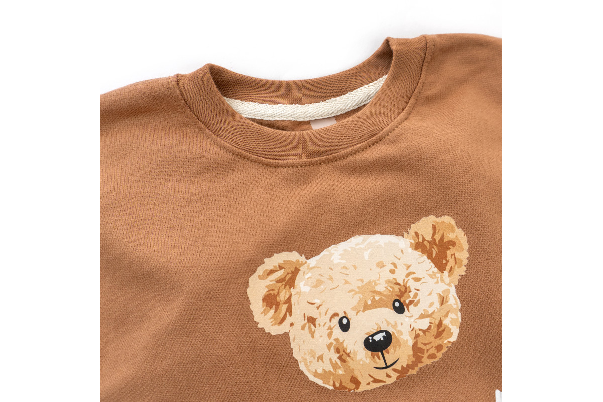 Свитшот для детей коричневого цвета с милым принтом мишки.