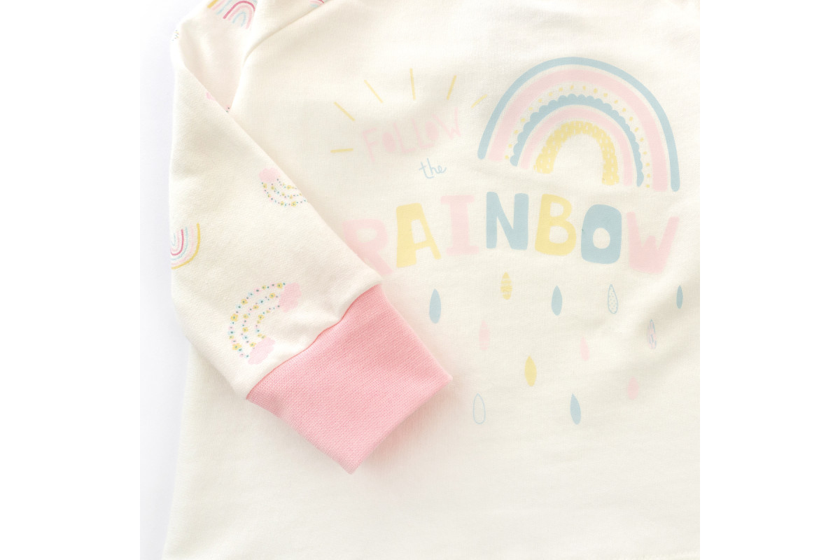 Пижама с манжетами. На кофте красивый накат в нежных тонах.