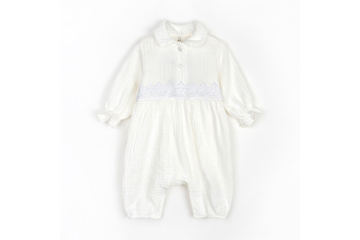 Человечек для девочки из муслина нежного молочного цвета — идеальный выбор для Вашей малышки.