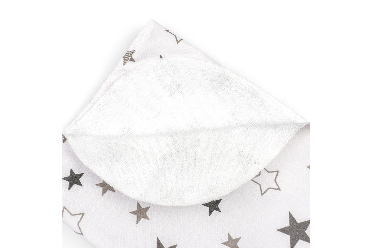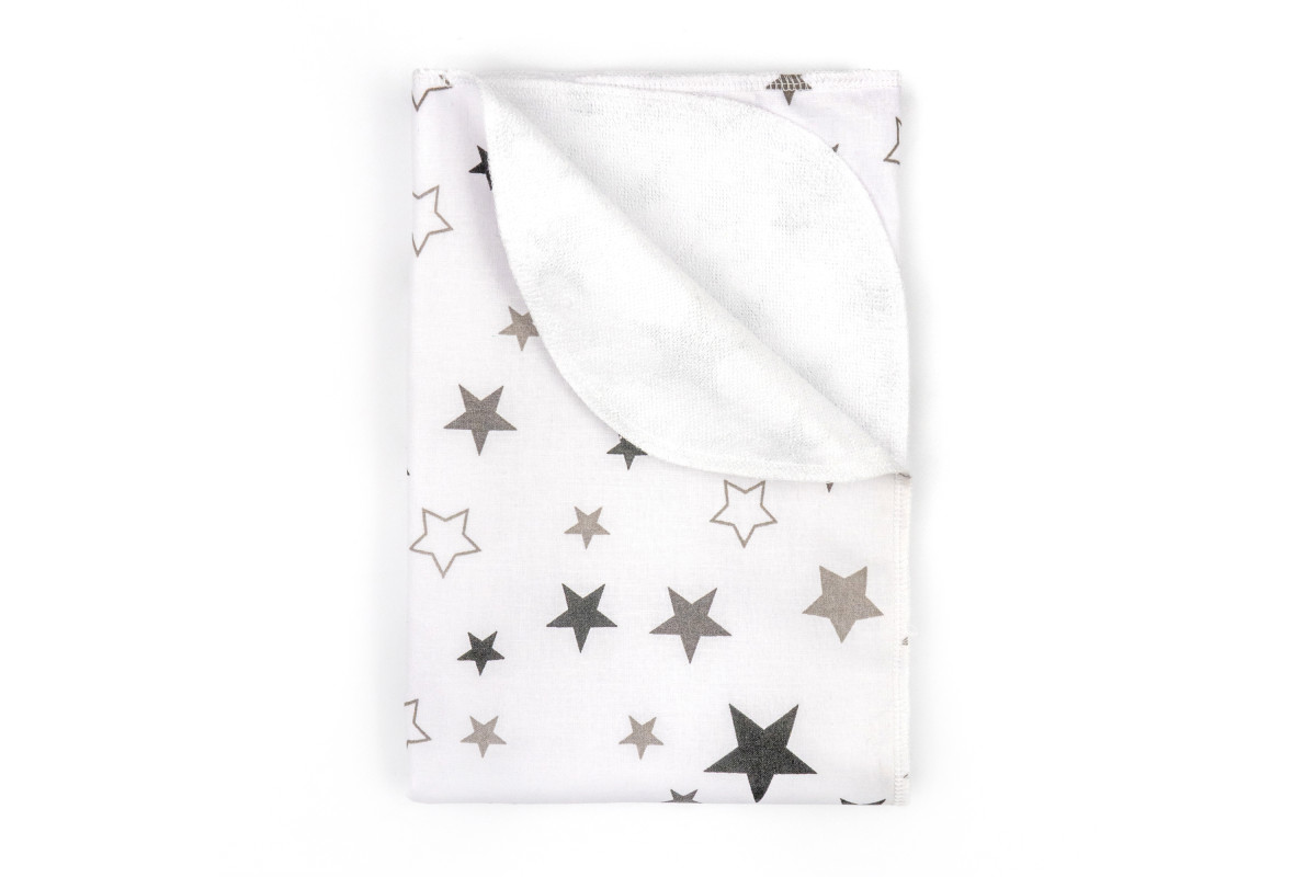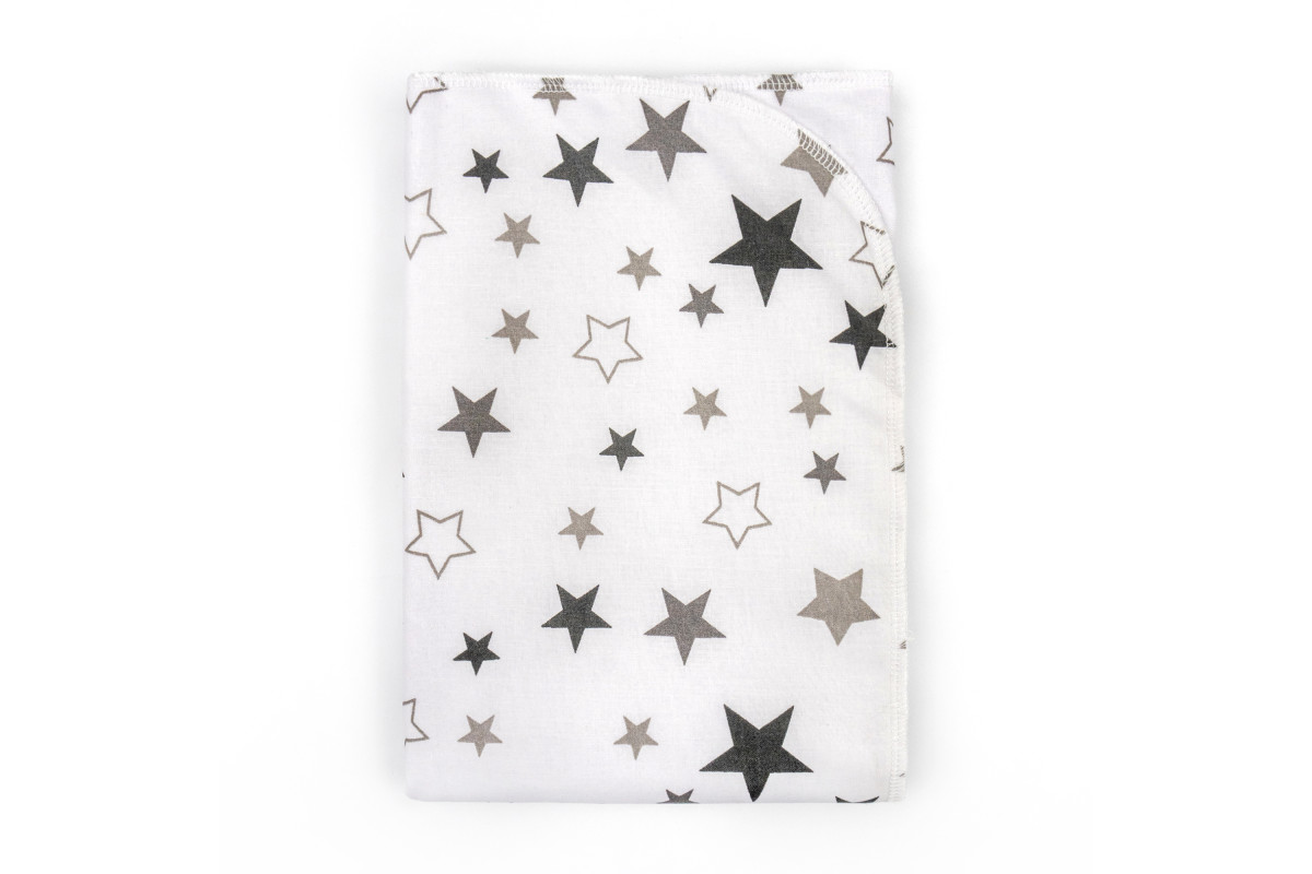 Пеленка в расцветке белого цвета с серыми звездочками подойдет и для девочки, и для мальчика.