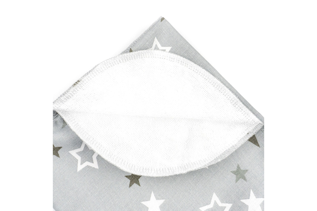 Пеленка имеет расцветку серого цвета в звездочки. Такая расцветка подойдет и для мальчика, и для девочки.
