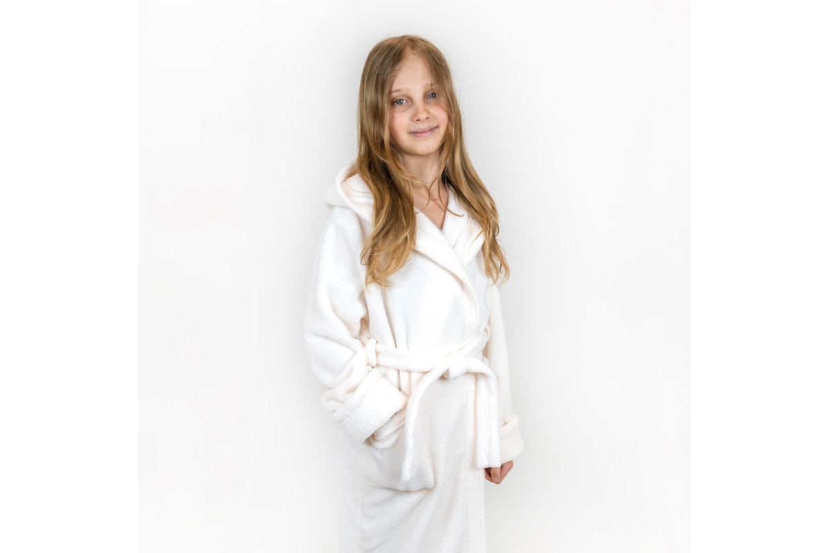 Халат детский серого цвета.Сделанный из ткани велсофт - очень мягкой и теплой.Средняя длина. Идет с ..