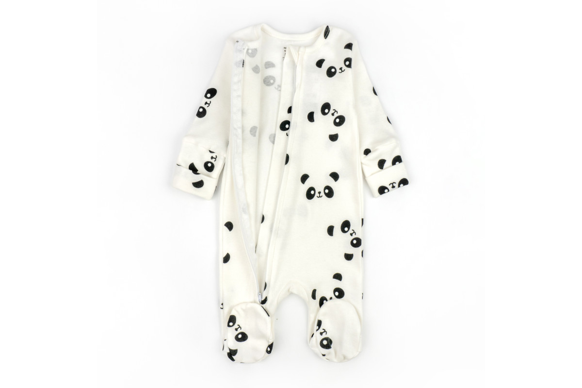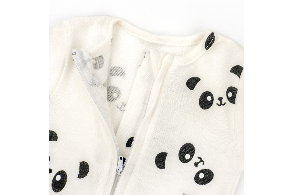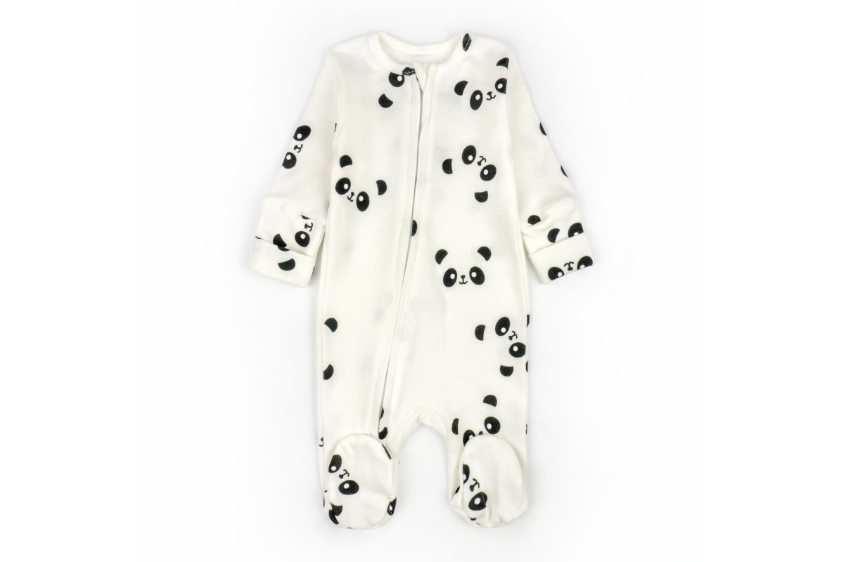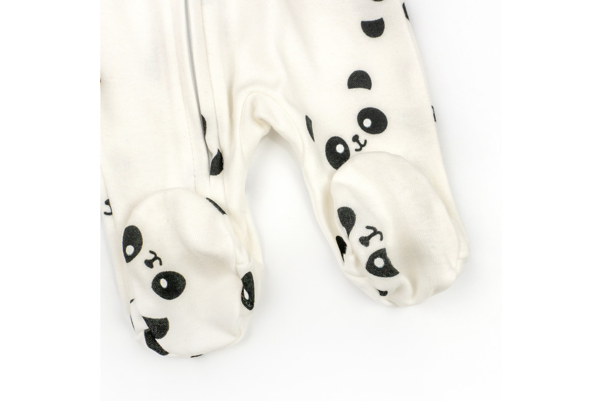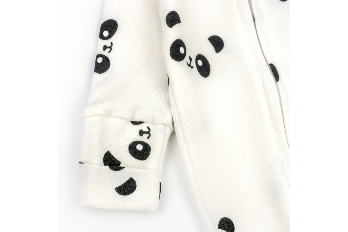 Человечек в расцветке молочного цвета с пандами. Подойдет и для мальчиков, и для девочек.