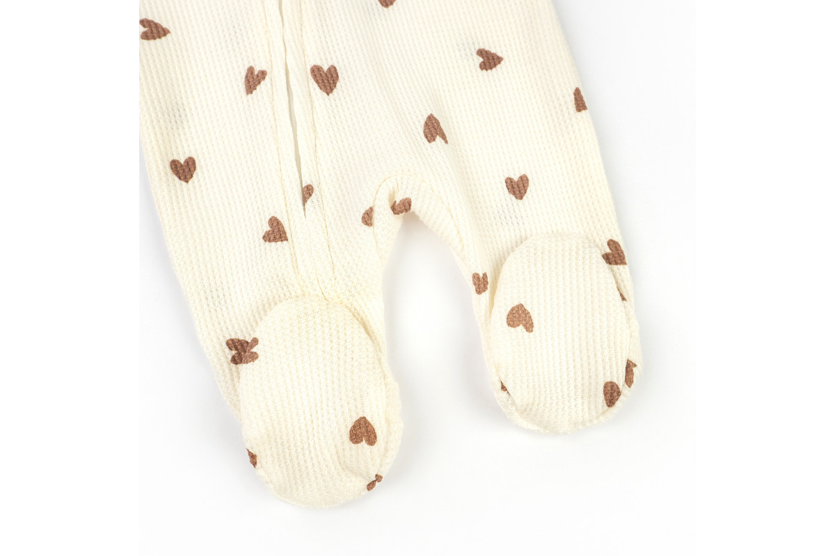 Красивый человечек для младенцев молочного цвета с кофейными сердечками.