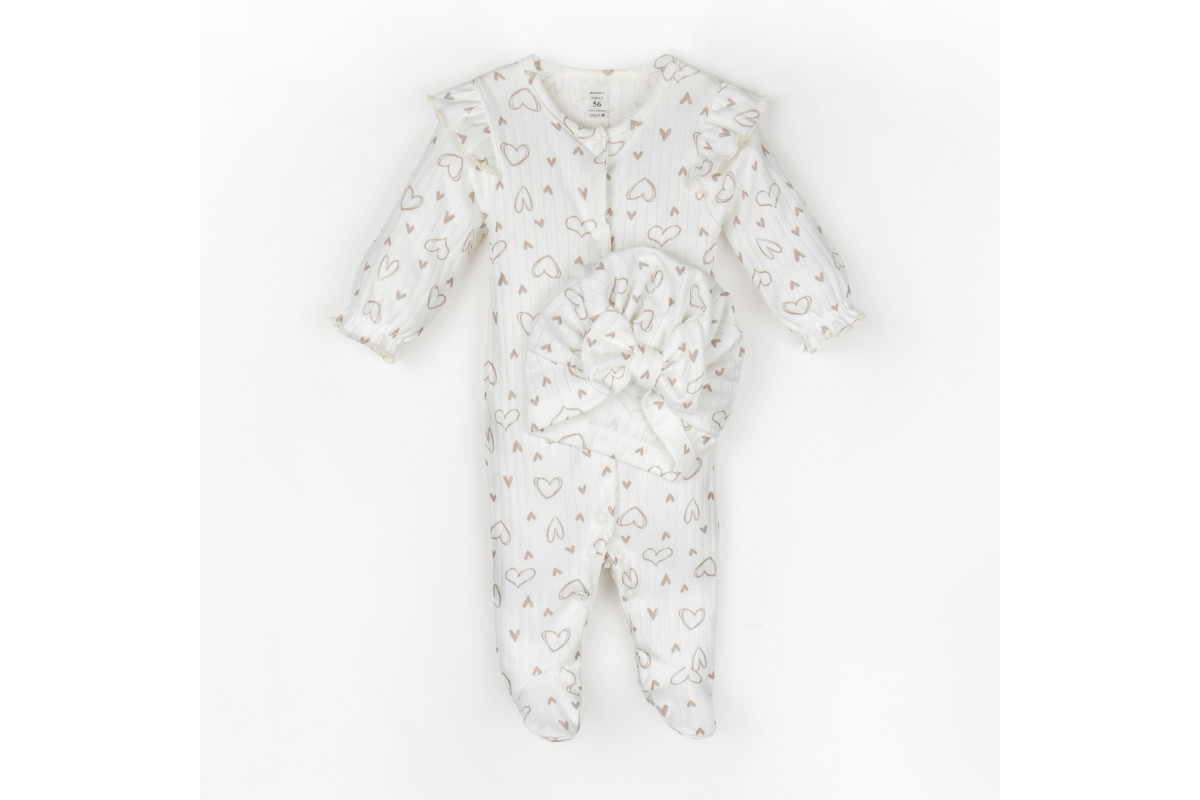 Комплект человечек с шапочкой для девочки с сердечками Hearts
