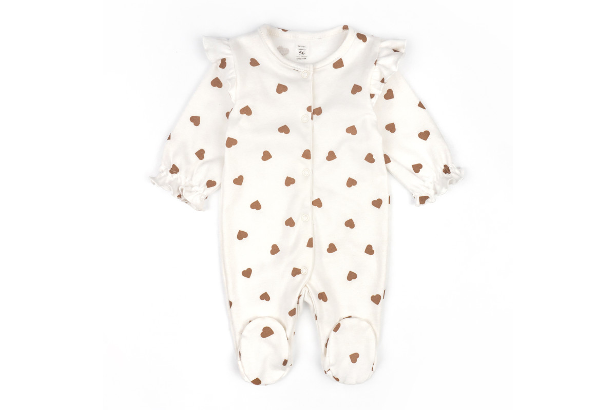 Человечек в расцветке молочного цвета с коричневыми сердечками.