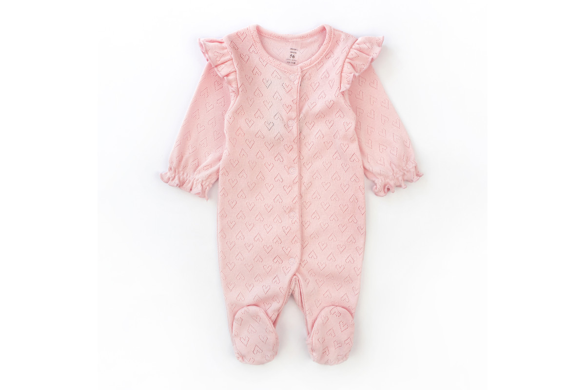 Человечек для девочек розового цвета с пандочками.Застегивается на кнопочки по центру изделия. Для у..