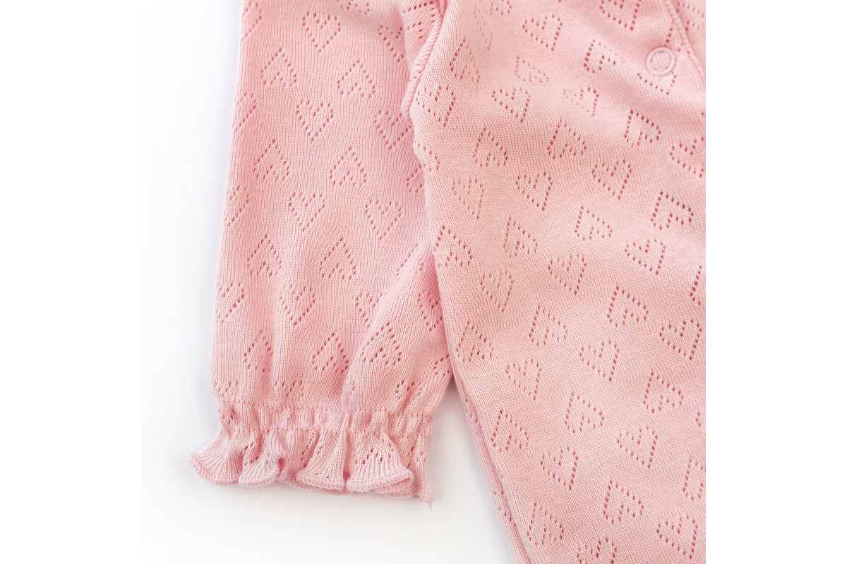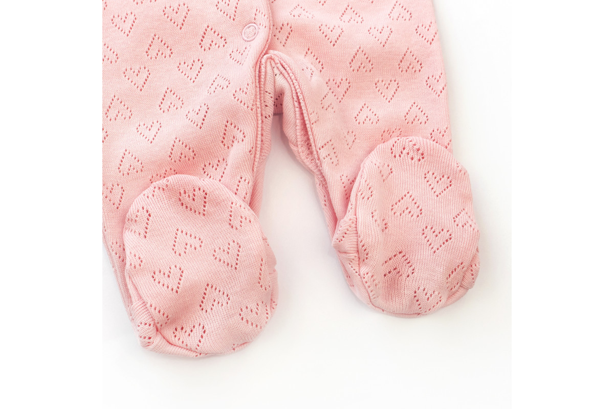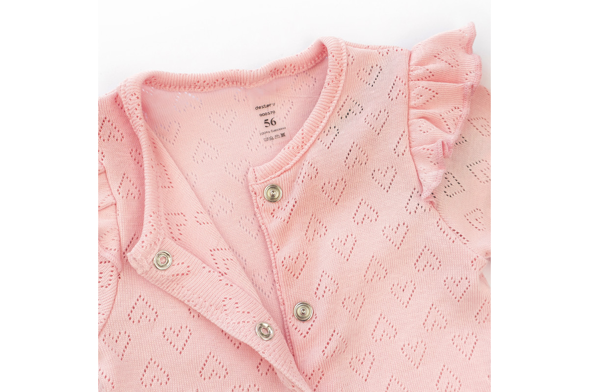 Изготовлен из рибаны трансферли - ткань с перфорацией в виде сердечек, что выглядит очень мило.