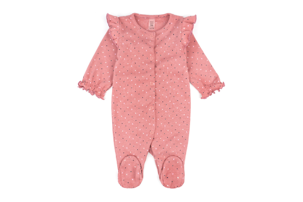 Комбез для удобства переодевания и смены подгузника имеет застежку в виде кнопок по всей длине.
