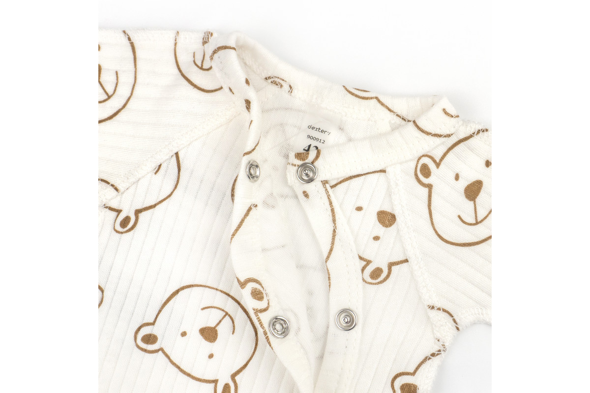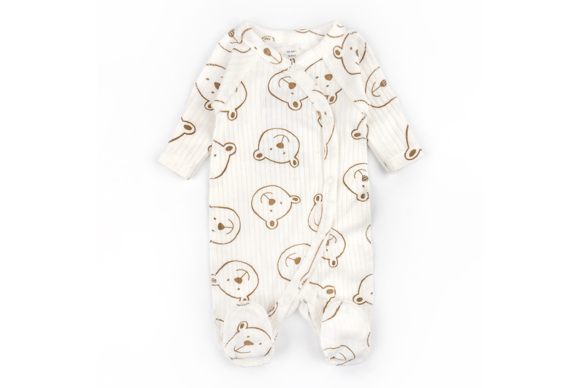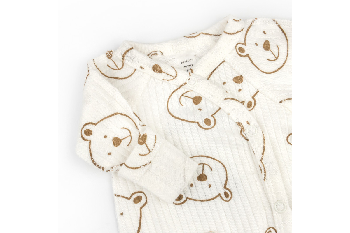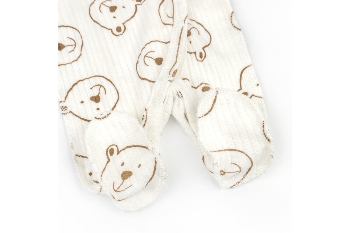 Комбинезон имеет расцветку молочного цвета с мишками. Подойдет и для мальчика, и для девочки.