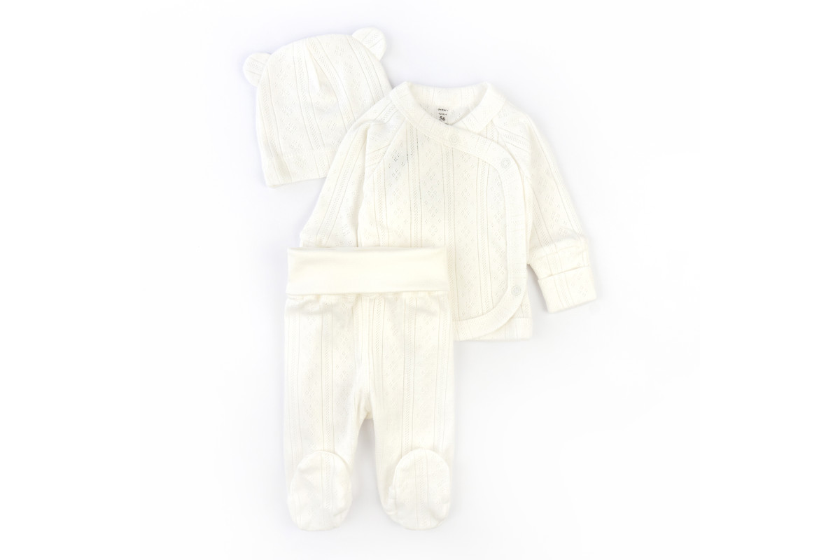 Комплект для малышей 3 в 1 распашонка ползуны шапочка с ушками Delicate