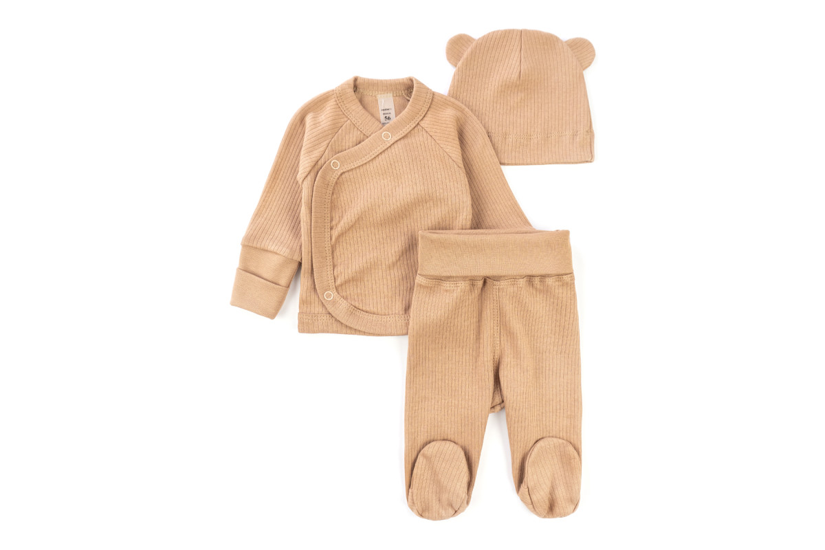 Комплект для малышей 3 в 1 распашонка ползуны шапочка с ушками Coffee