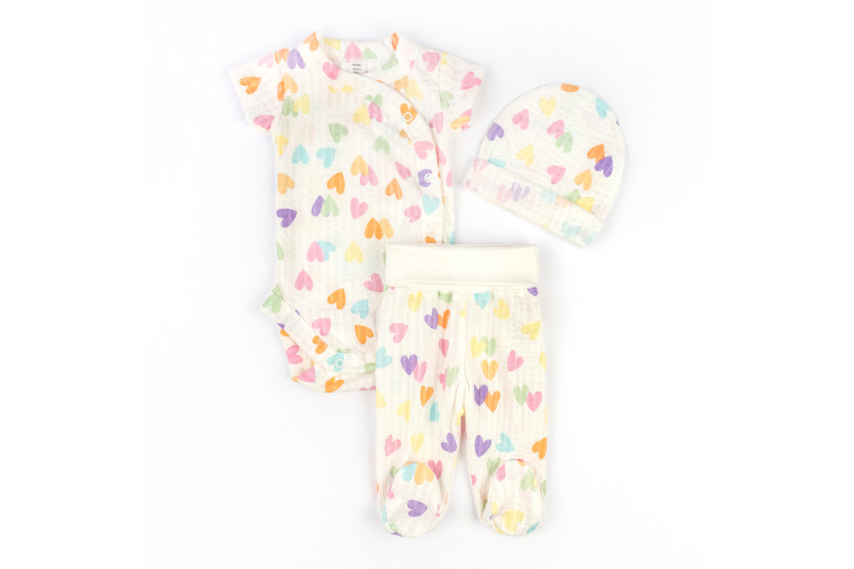 Комплект для девочки 3 в 1 боди ползуны шапочка с подворотом Hearts