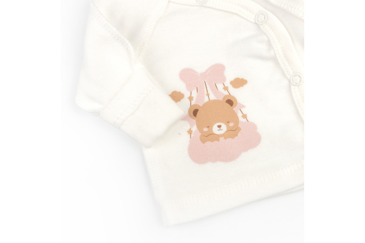 - распашонки с принтом мишки, которая застегивается на кнопки,