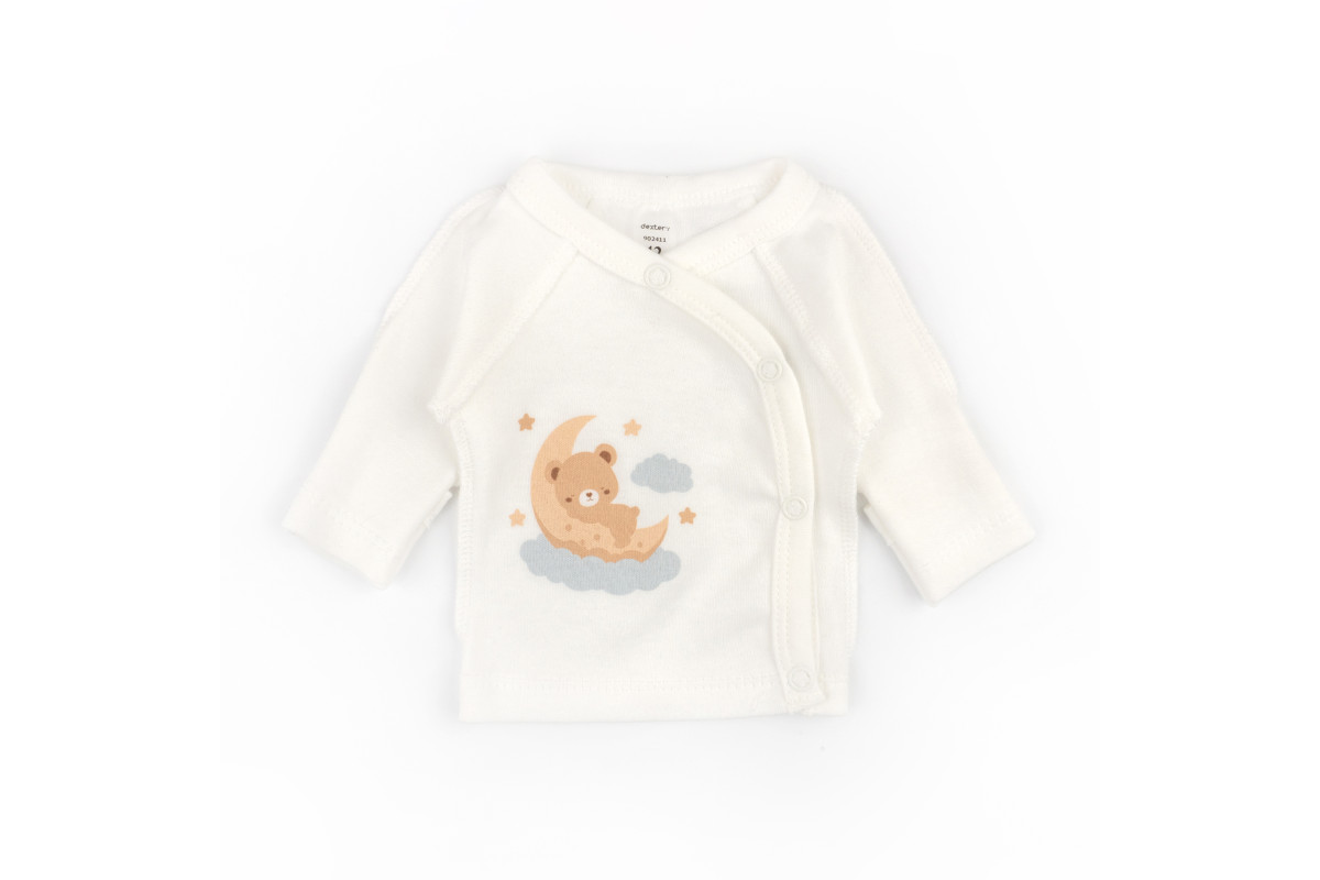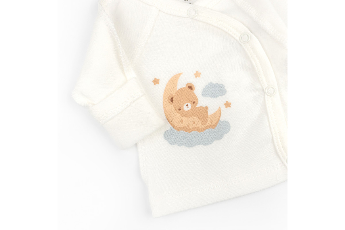 - распашонки с принтом мишки, которая застегивается на кнопки,