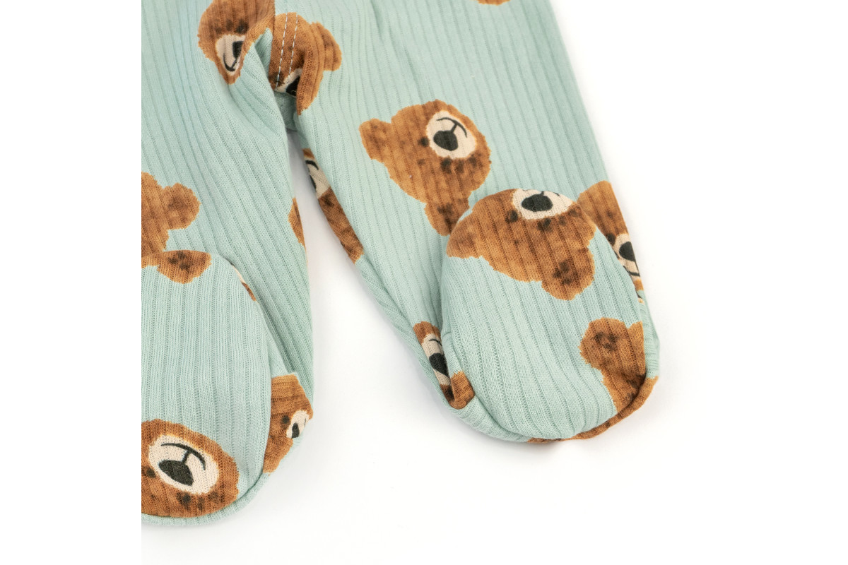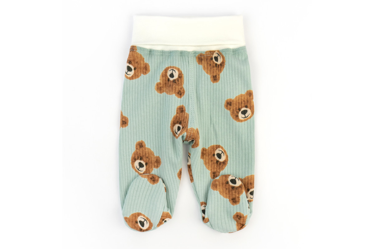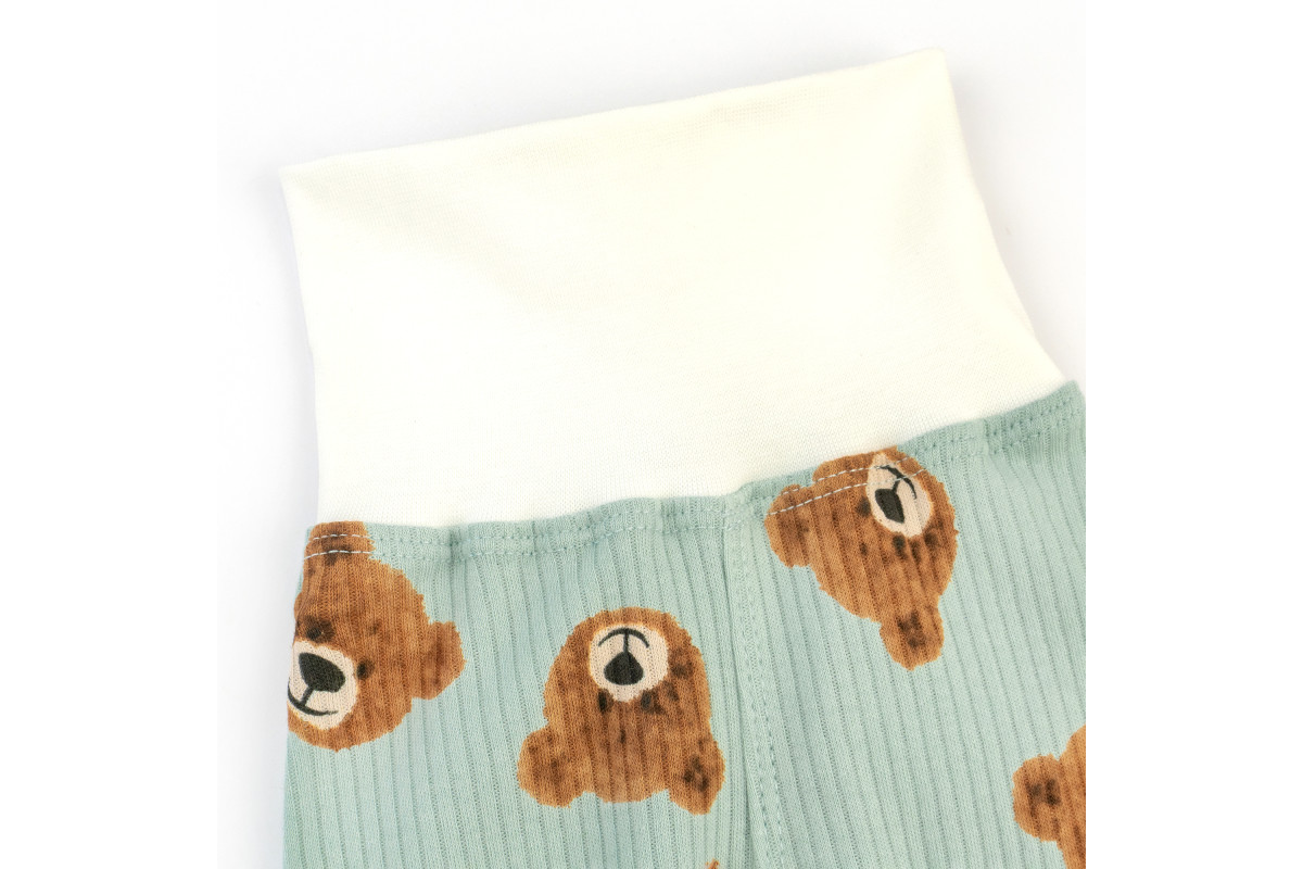 Ползунки для малышей голубого цвета с мордочками мишек.