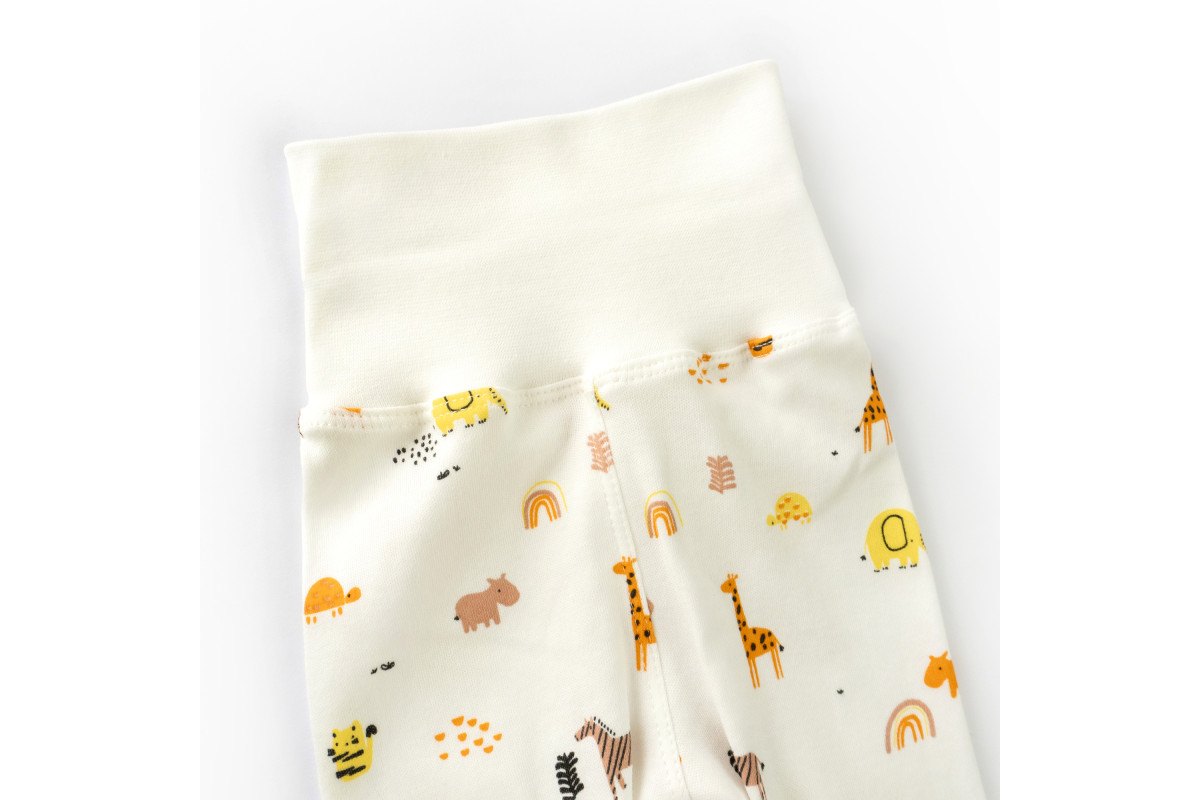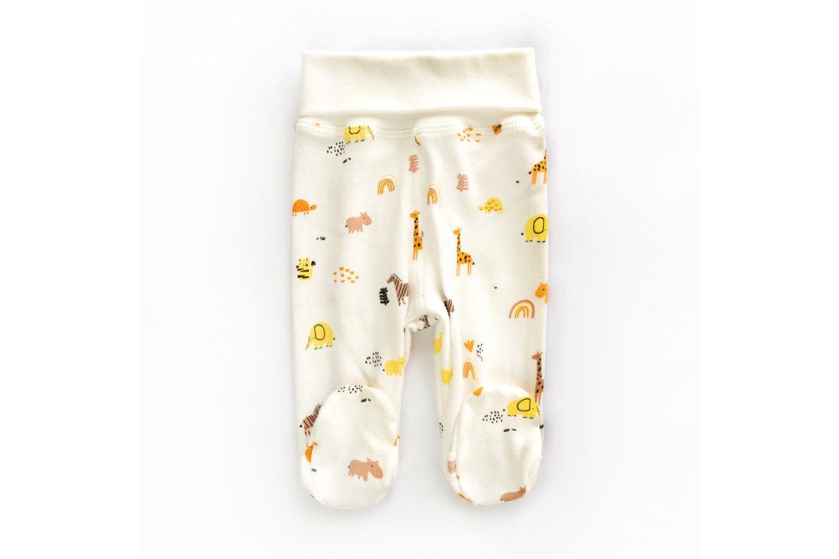 Повзунки для немовлят молочного кольору із звірятами.Зручна резинка на поясі не здавлює животик і за..