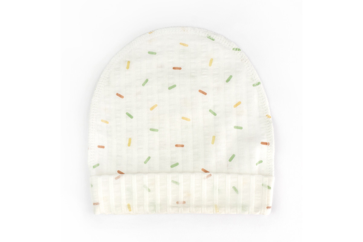 Шапочка для малышей молочного цвета с принтом конфетти.