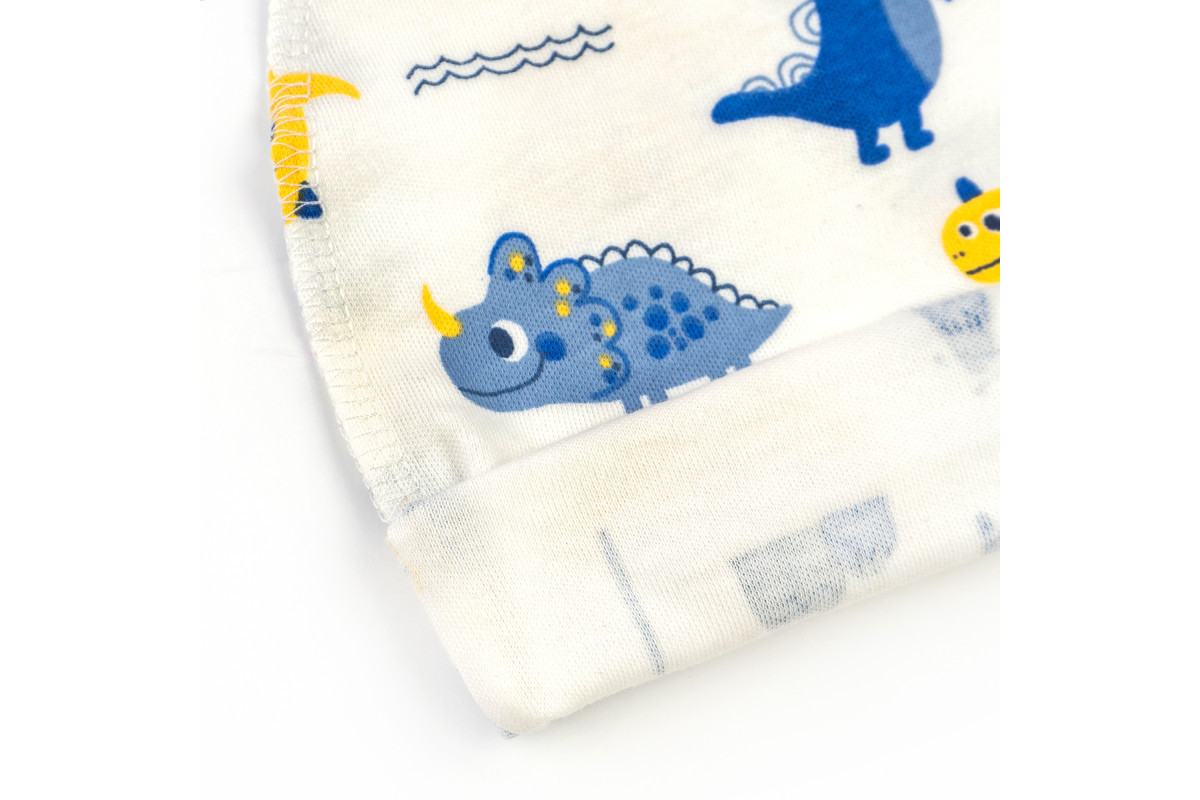 Имеет расцветку молочного цвета с яркими динозаврами.