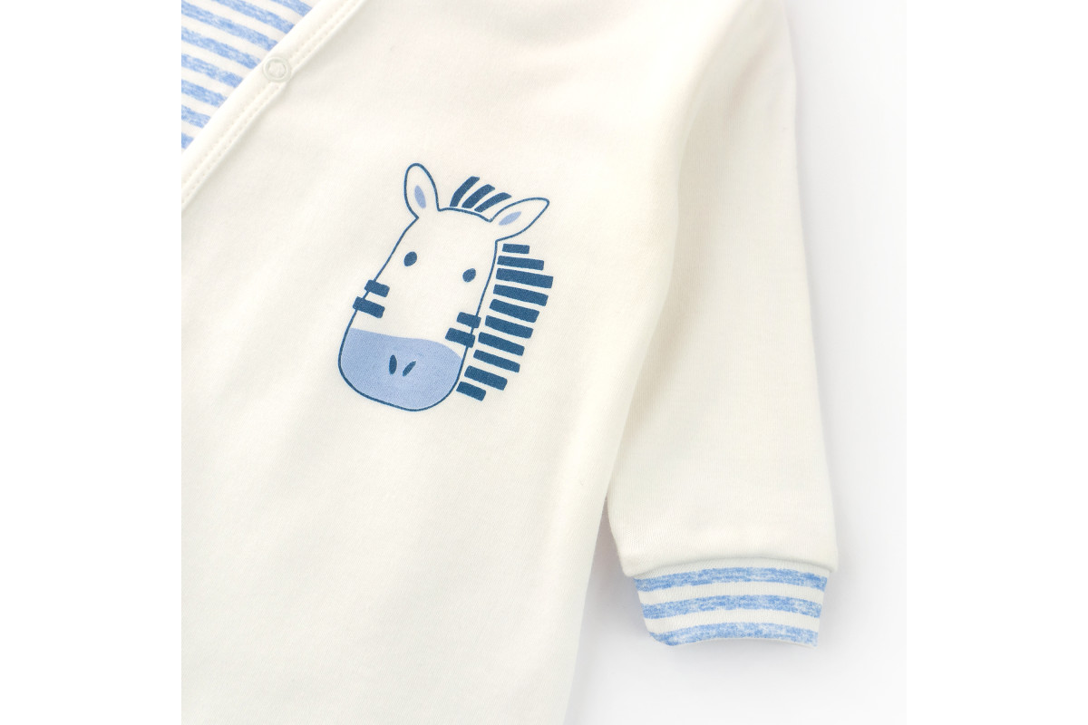 Человечек имеет закрытые ножки, кнопочки до пяточки, открытые рукава.