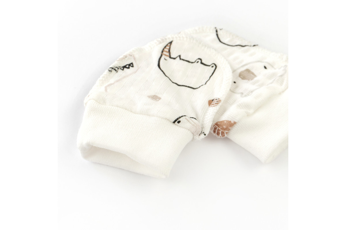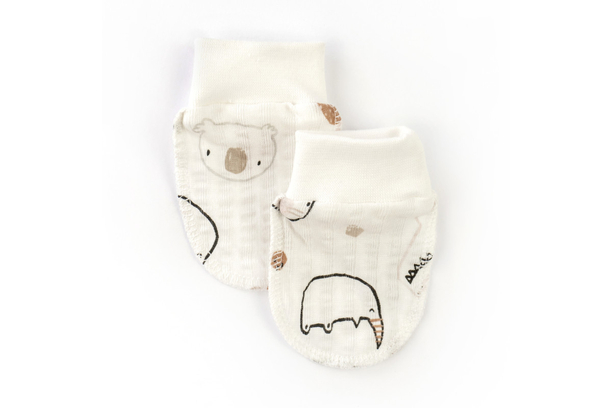 Царапки для младенцев на манжете молочного цвета со зверятами.