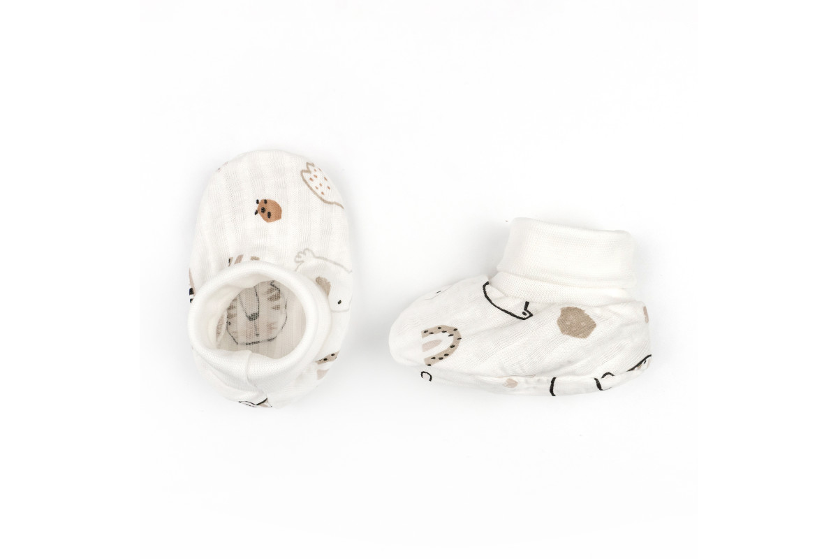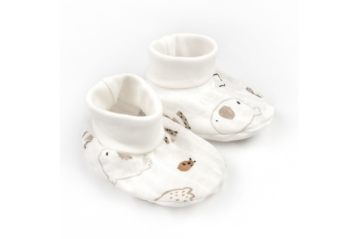 Пинетки для новорожденных на манжете.Сшитые из ткани с начесом – из футера.Имеют расцветку белого цв..