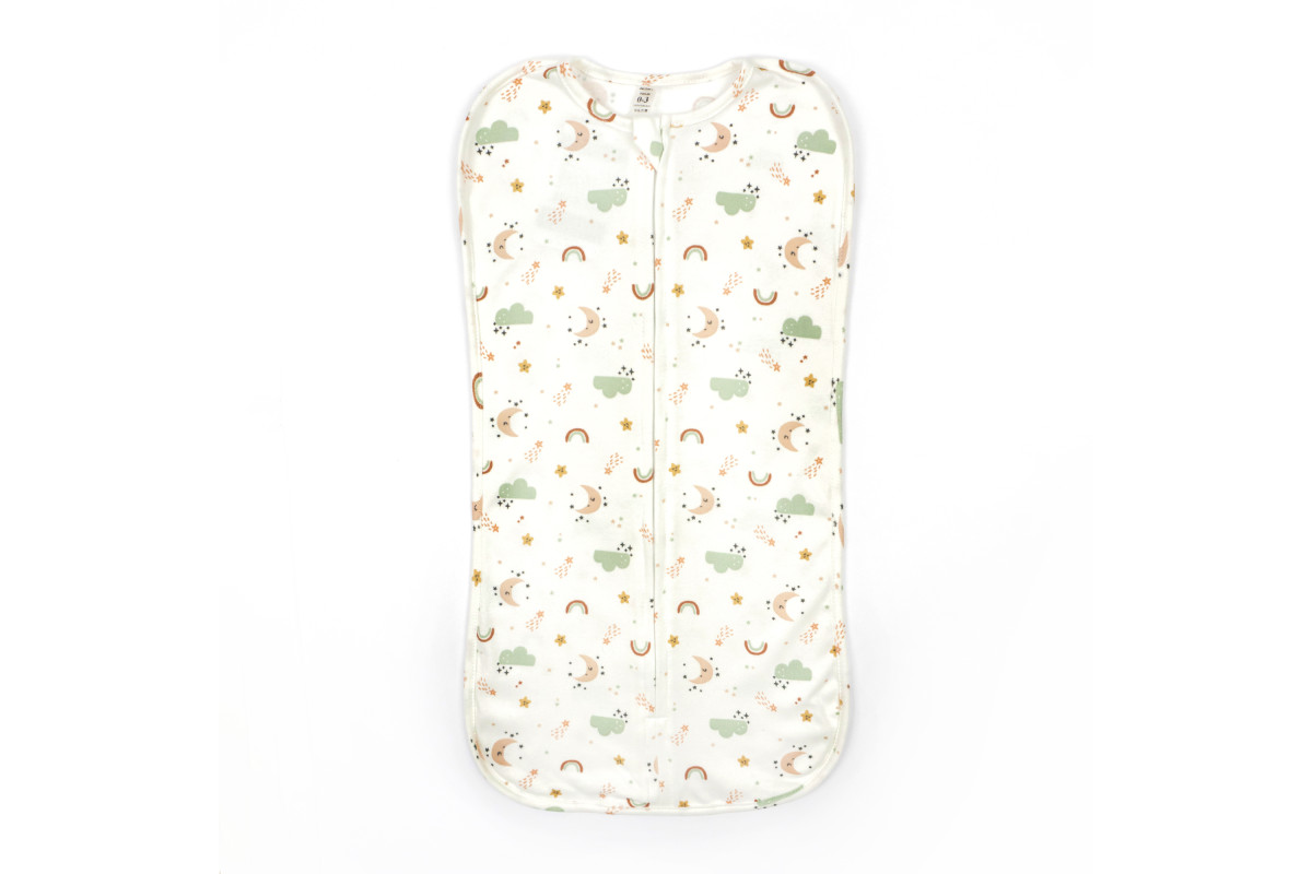 Такая пеленка имеет анатомическую форму, создающую "кокон" вокруг ребенка.