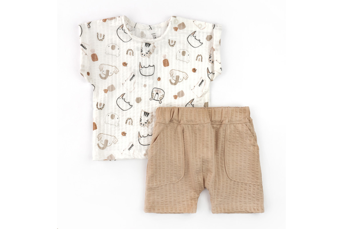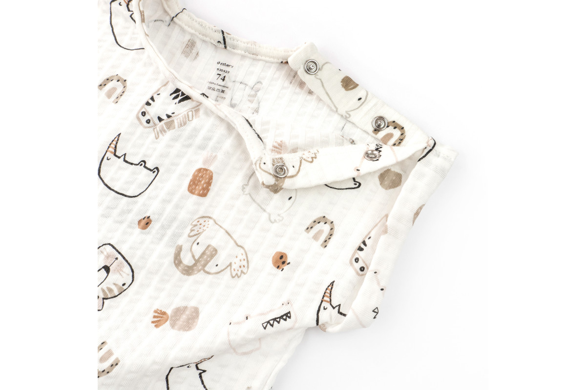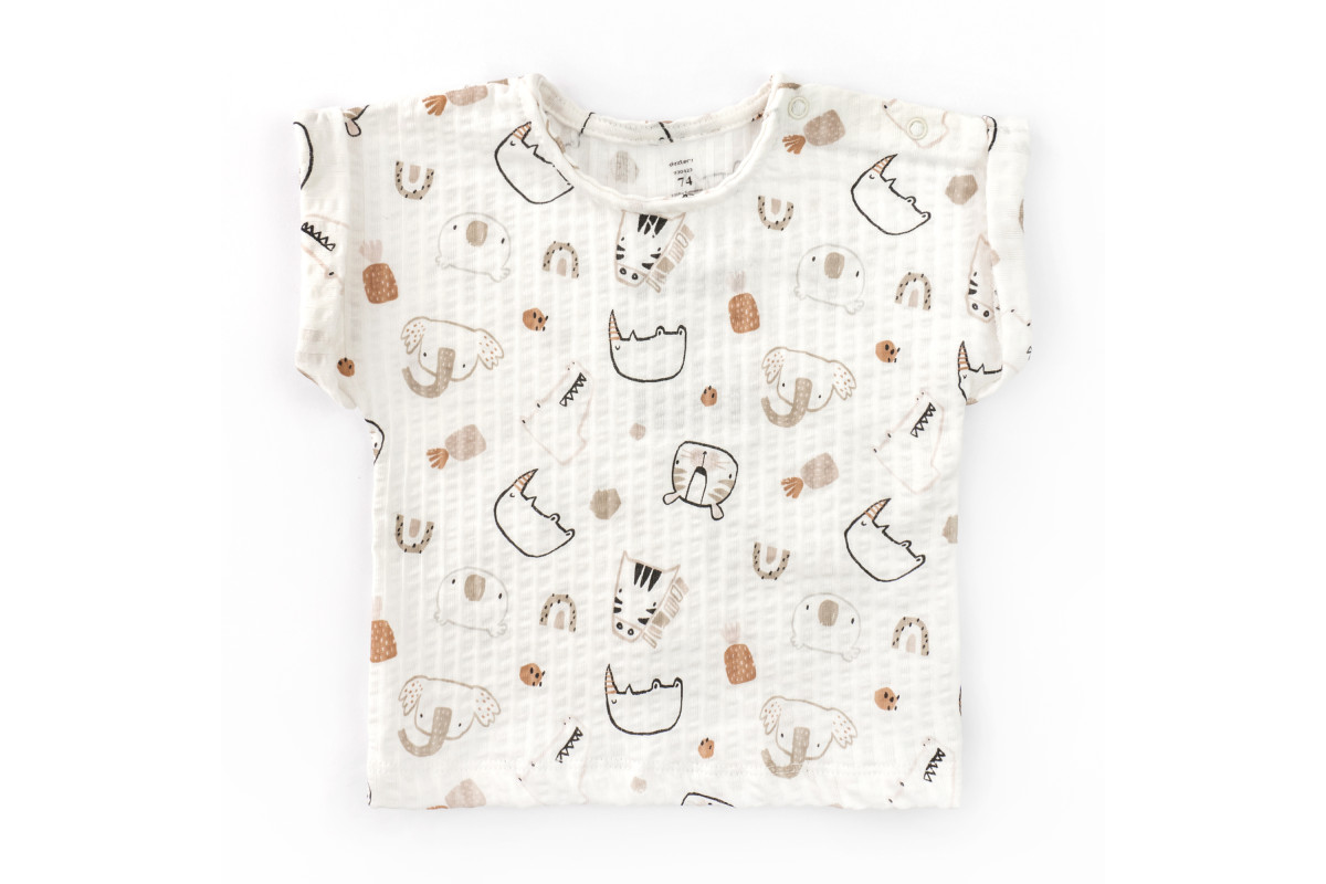 - футболка на кнопочках молочного цвета с принтом зверюшек;