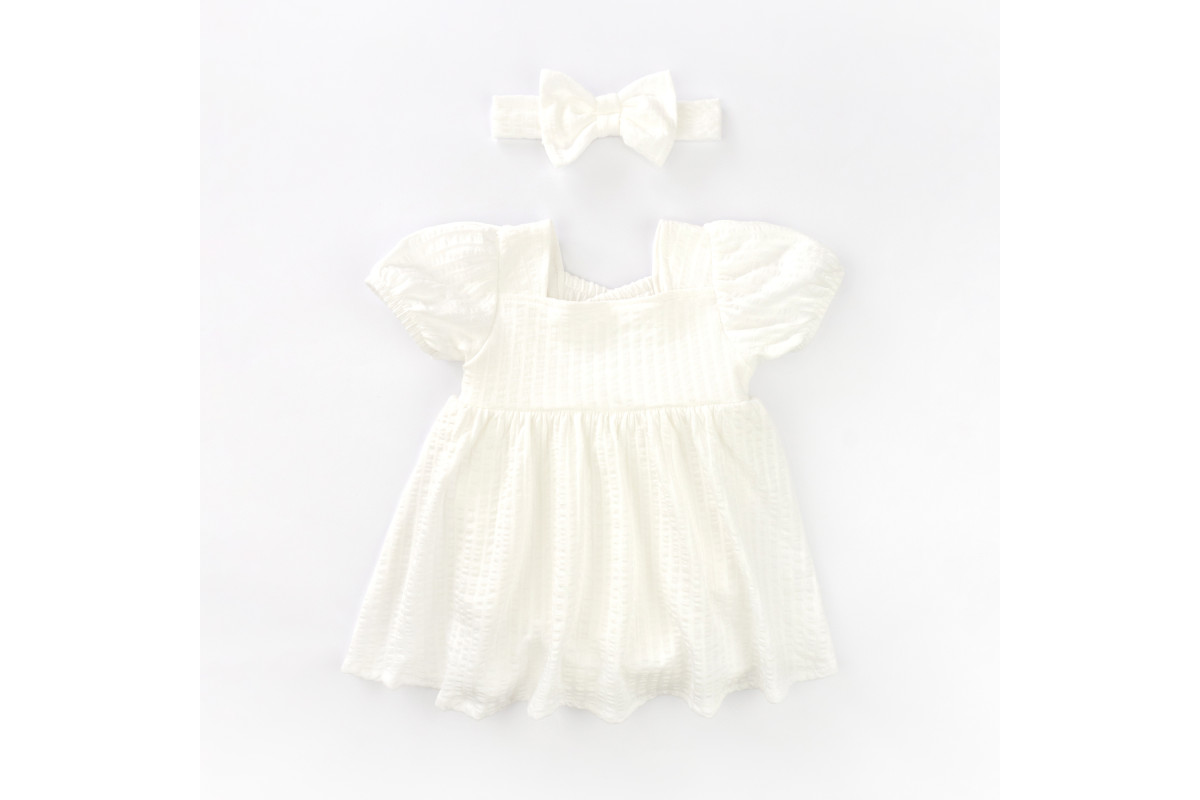 Нежное боди-платье молочного цвета в комплекте с повязкой - идеальный выбор для маленькой модницы.