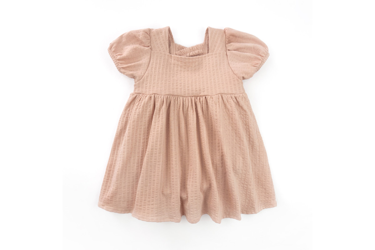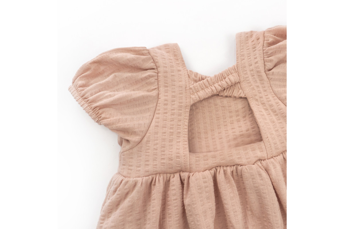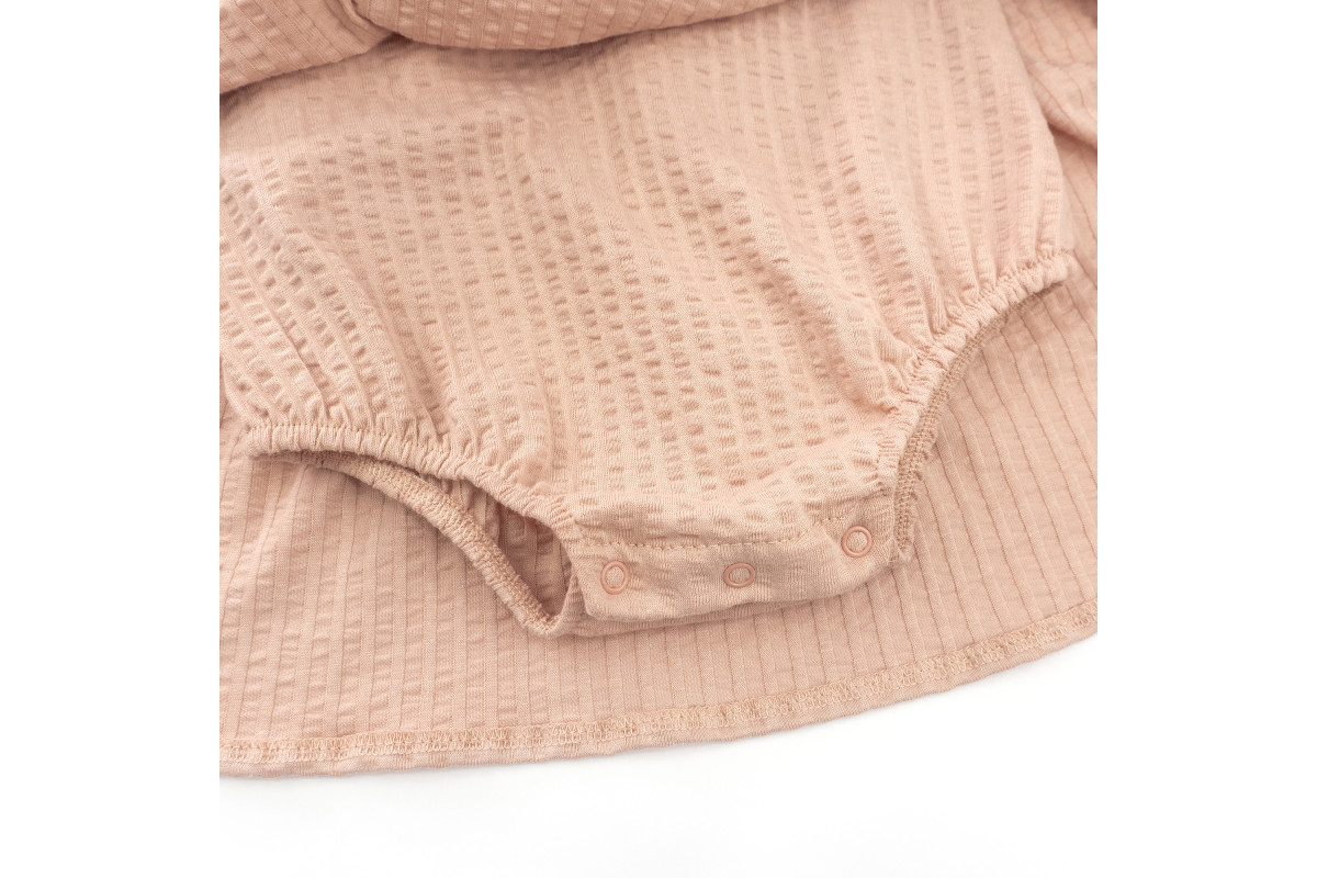 Нарядное боди-платье пудрового цвета в комплекте с повязкой - идеальный выбор для маленькой модницы.