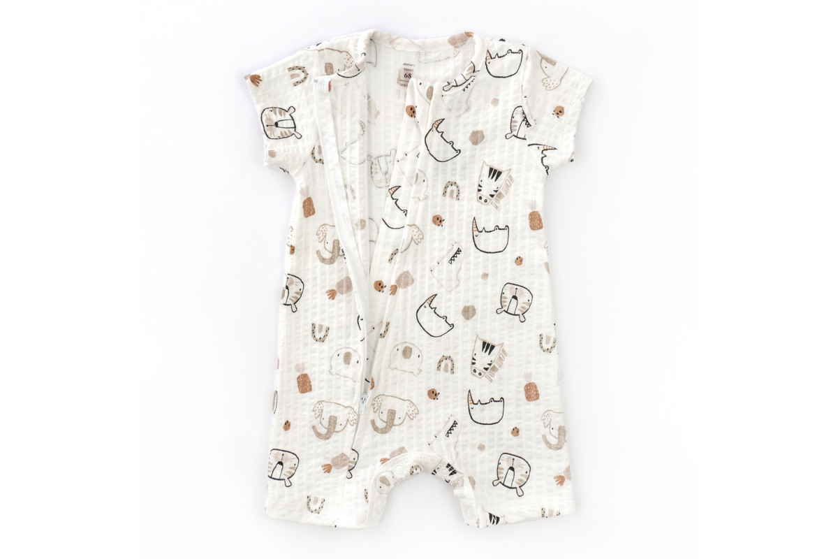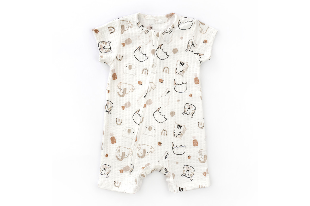Удобная молния, расположенная по диагонали, облегчает переодевание и экономит время родителей.