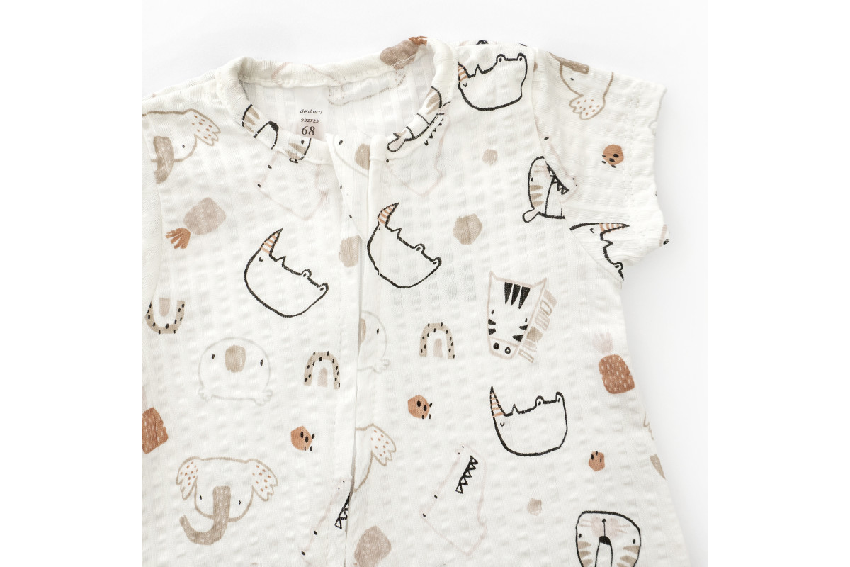 Пошит из мягкого интерлока жатки, он отлично дышит, не сковывает движений и бережно касается чувствительной кожи ребёнка.