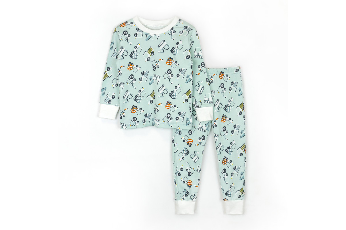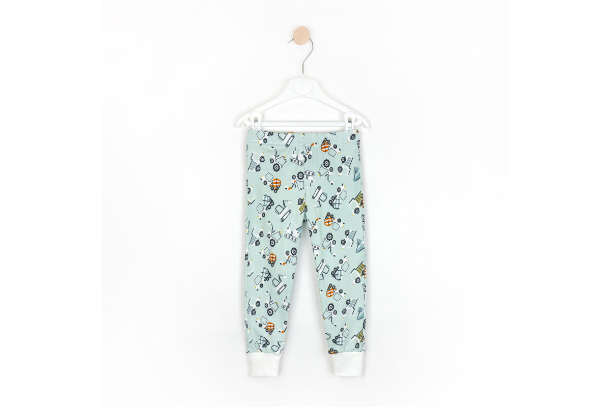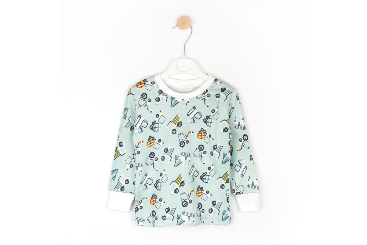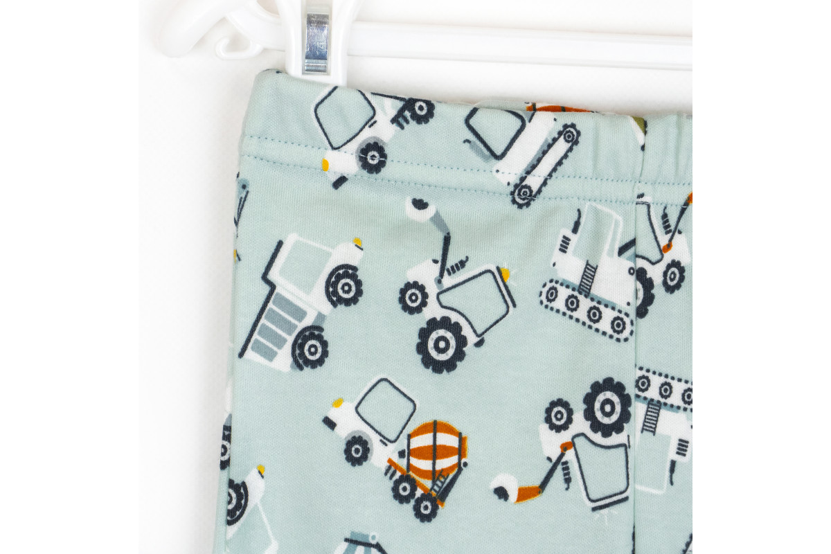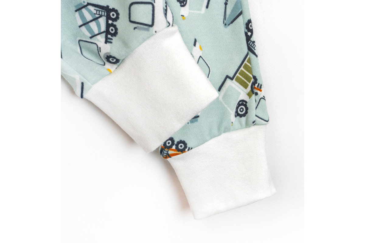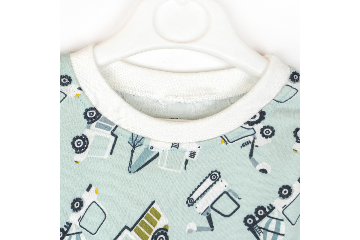 Пижама детская на манжетах голубого цвета с экскаваторами.