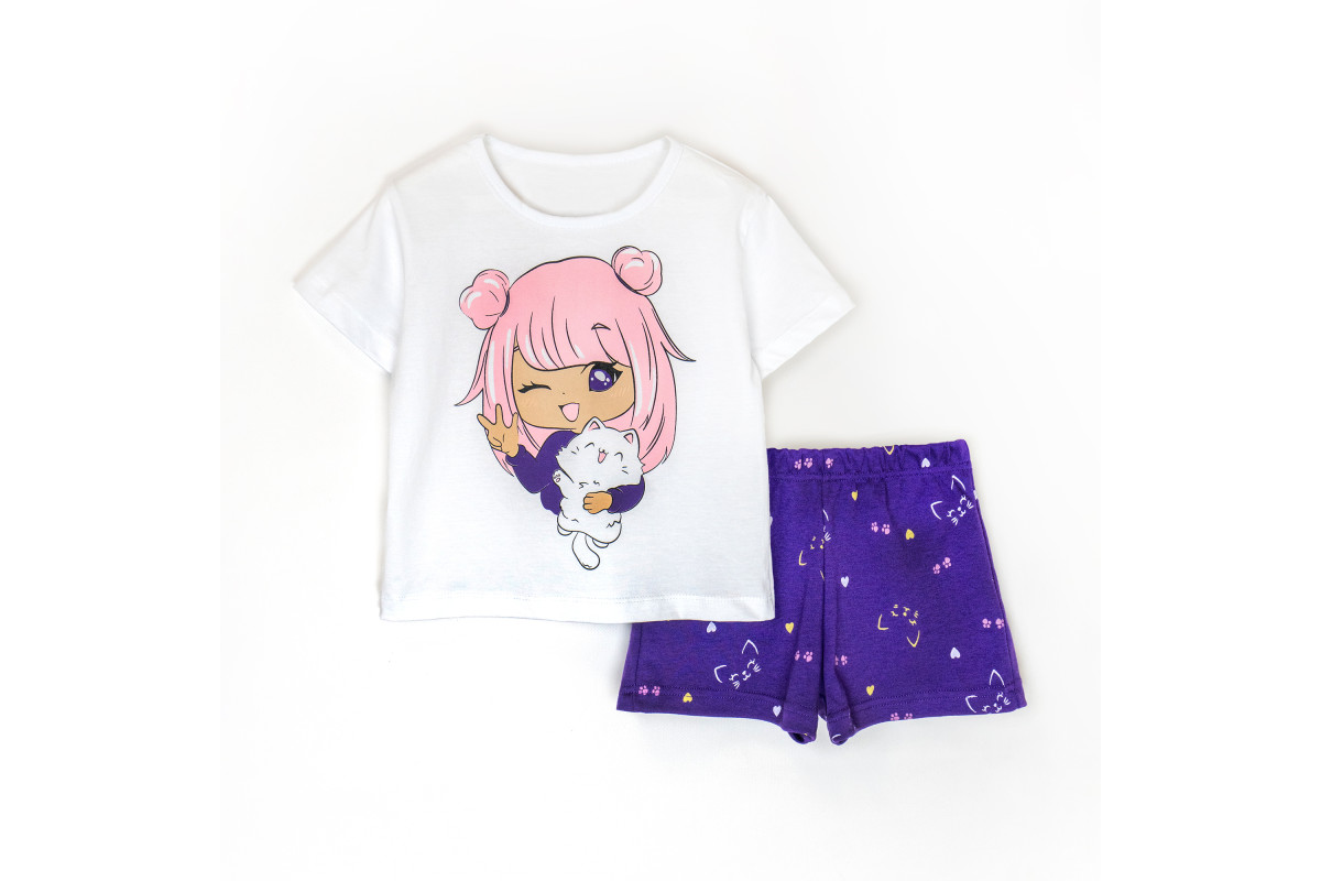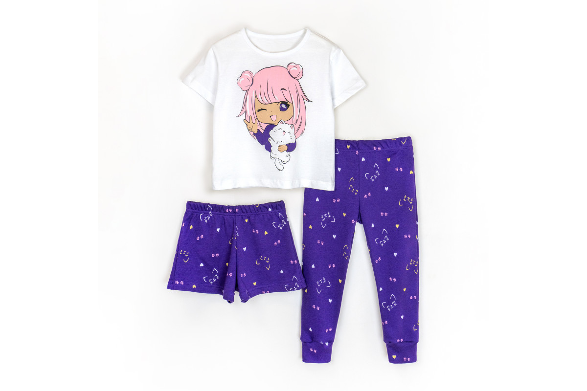 Пижама для девочки 3 в 1 футболка шорты штаны с принтом Anime girl