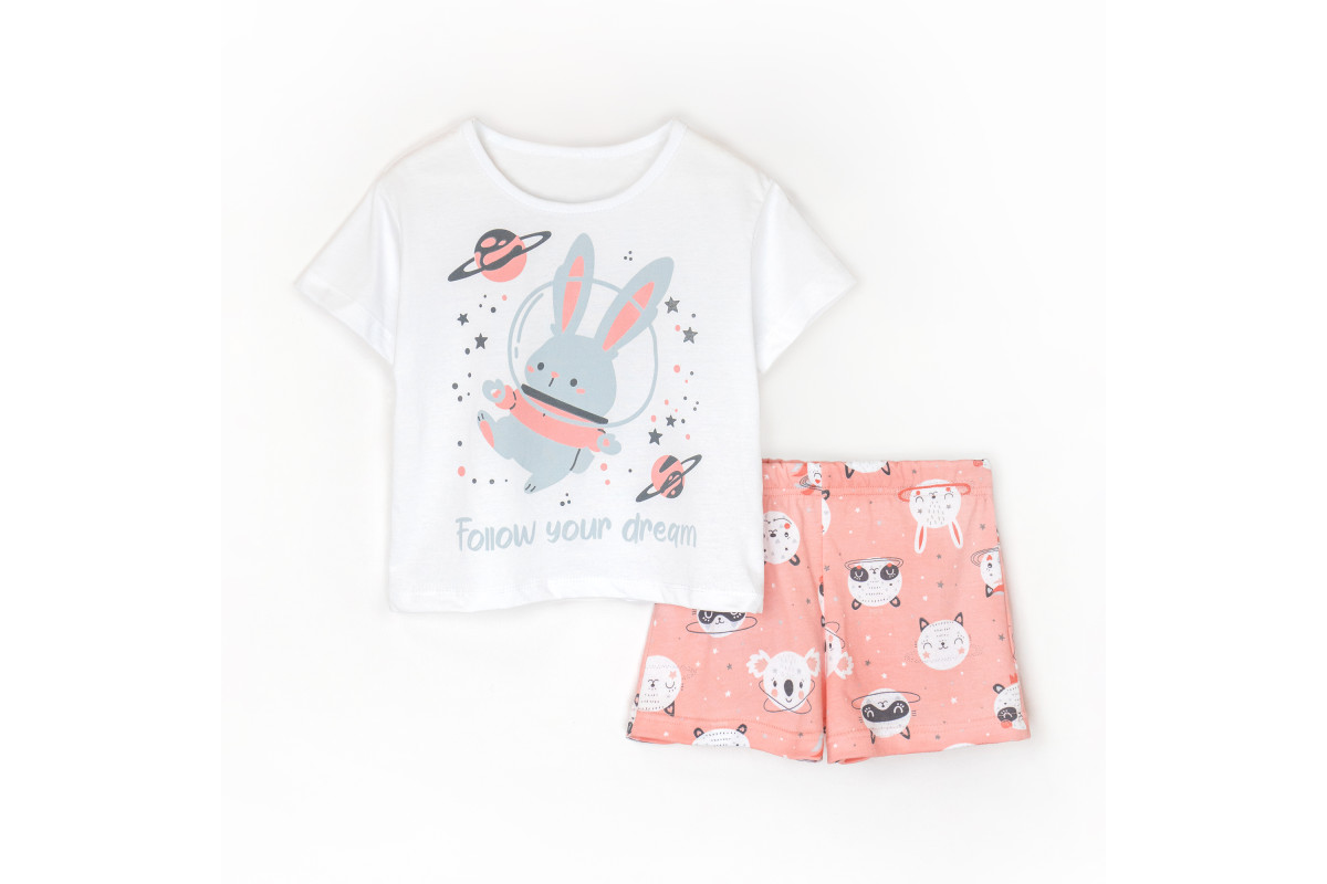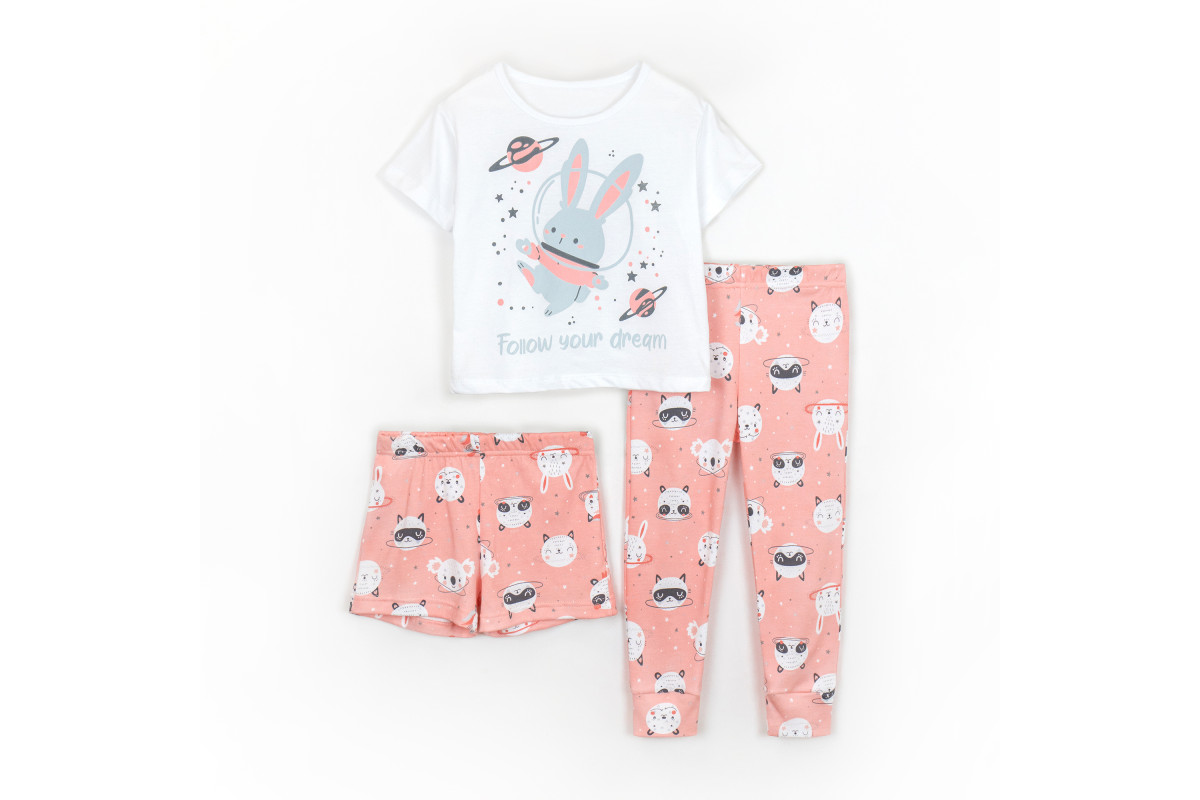 Пижама для девочки 3 в 1 футболка шорты штаны с принтом кролика Space Bunny