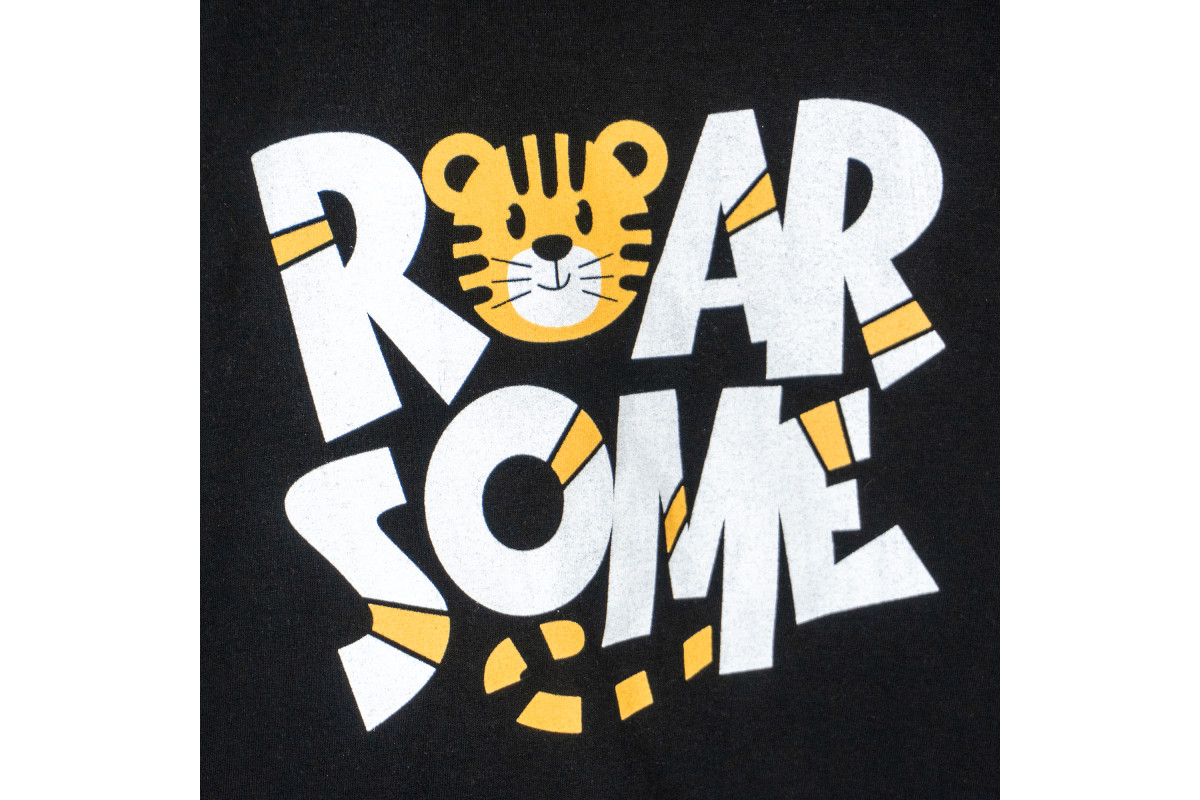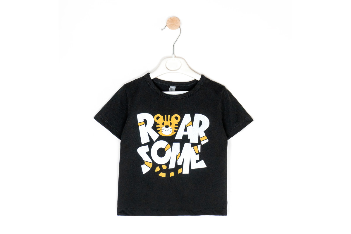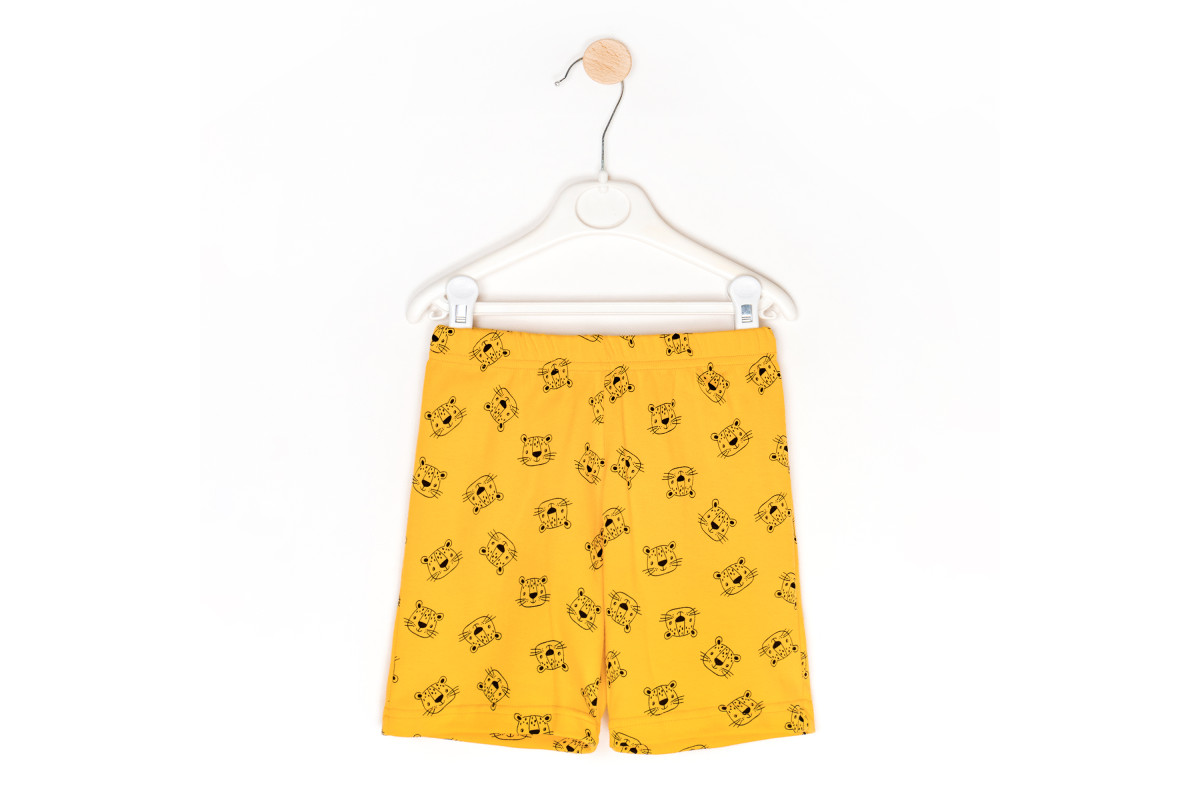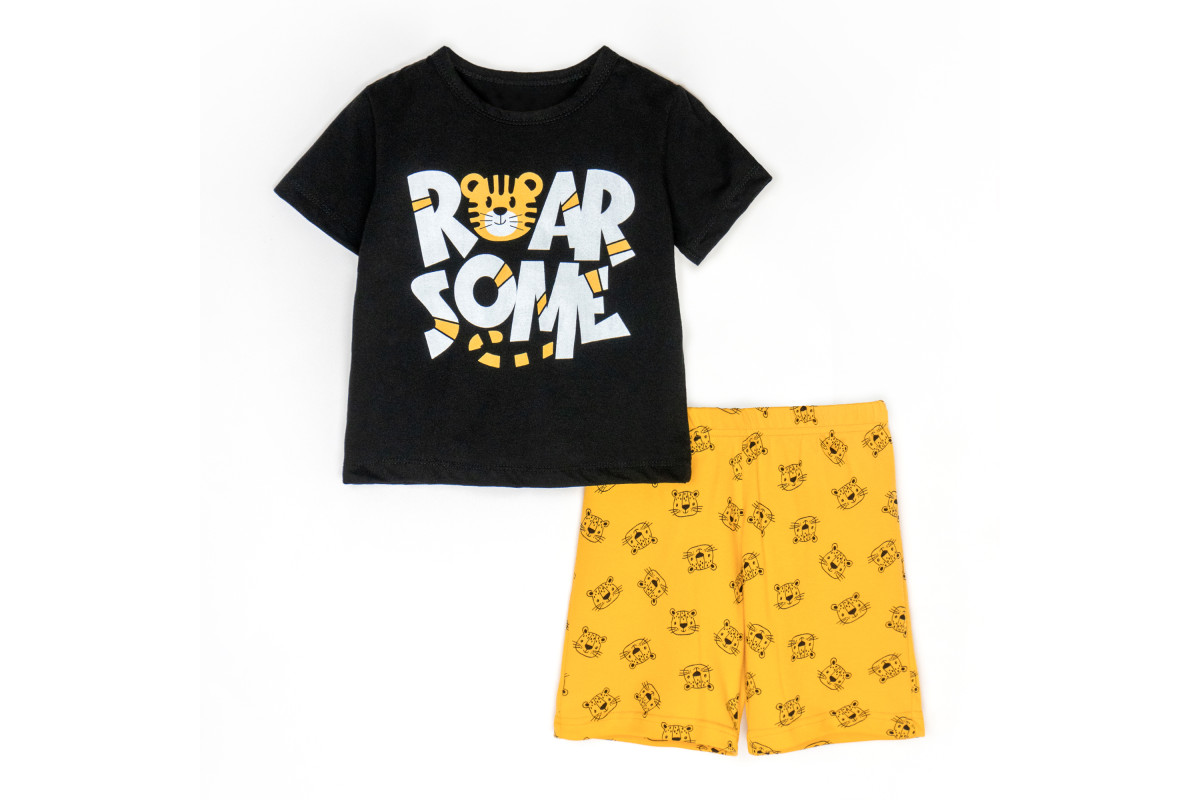 Яркая пижама для мальчика черно-желтого цвета с набивным рисунком тигрят.