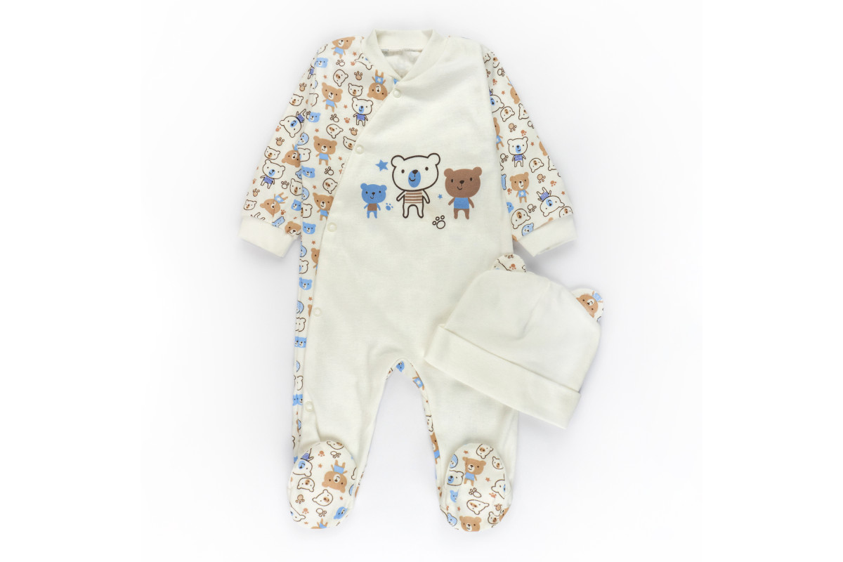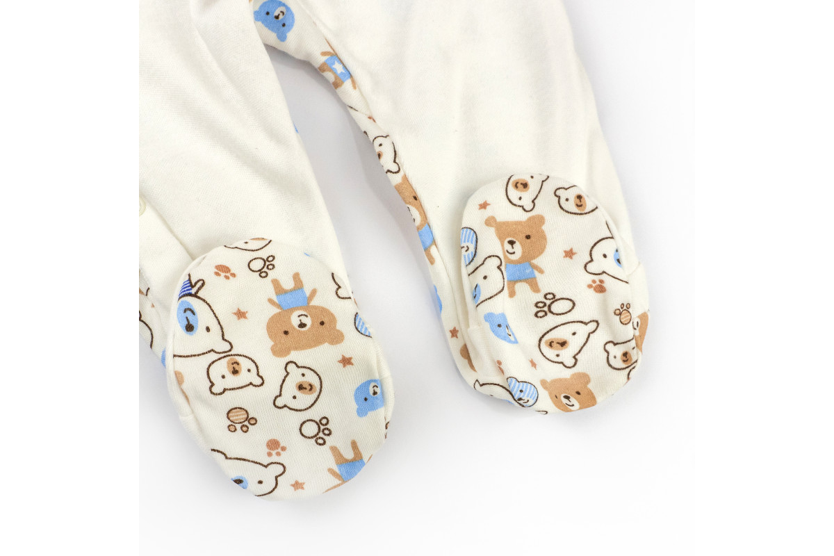 Милый однотонный белый человечек с аккуратным принтом - умка.Слип пошит из ткани с начесом фут..